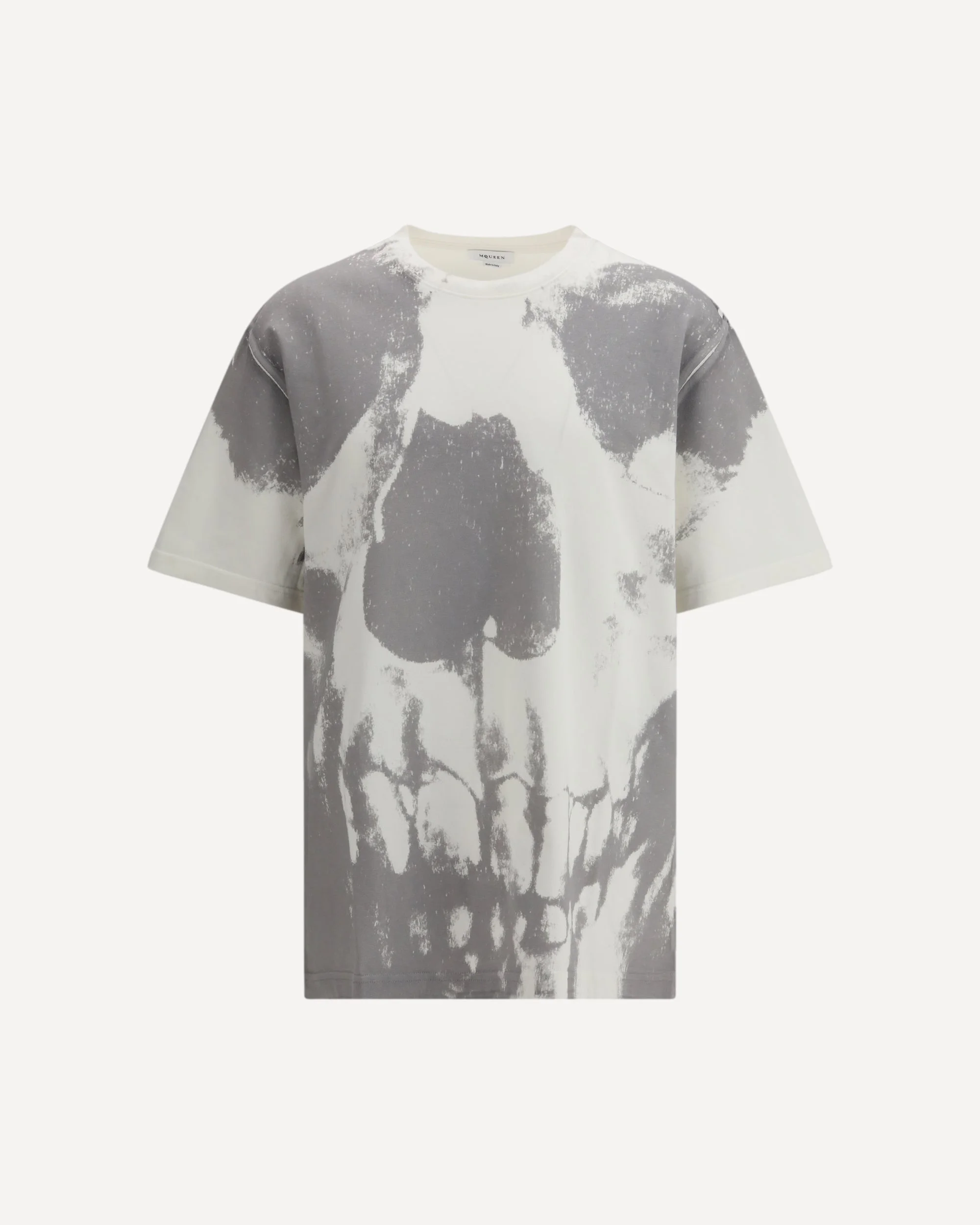 The skull-print T-shirt by Alexander McQueen features the brand’s iconic skull motif reinterpreted in a bold, contemporary graphic. Crafted from soft cotton, the design comes in an oversized fit that enhances comfort and adds a modern, relaxed attitude. A classic crew neckline completes the silhouette, making this piece a standout addition to casual looks. DETAILS - Sku: 848931QTAEB_0934 - Season: SS26 - Fit: Regular - Composition: GENERAL 100% Cotton - MADE IN ITALY
