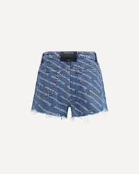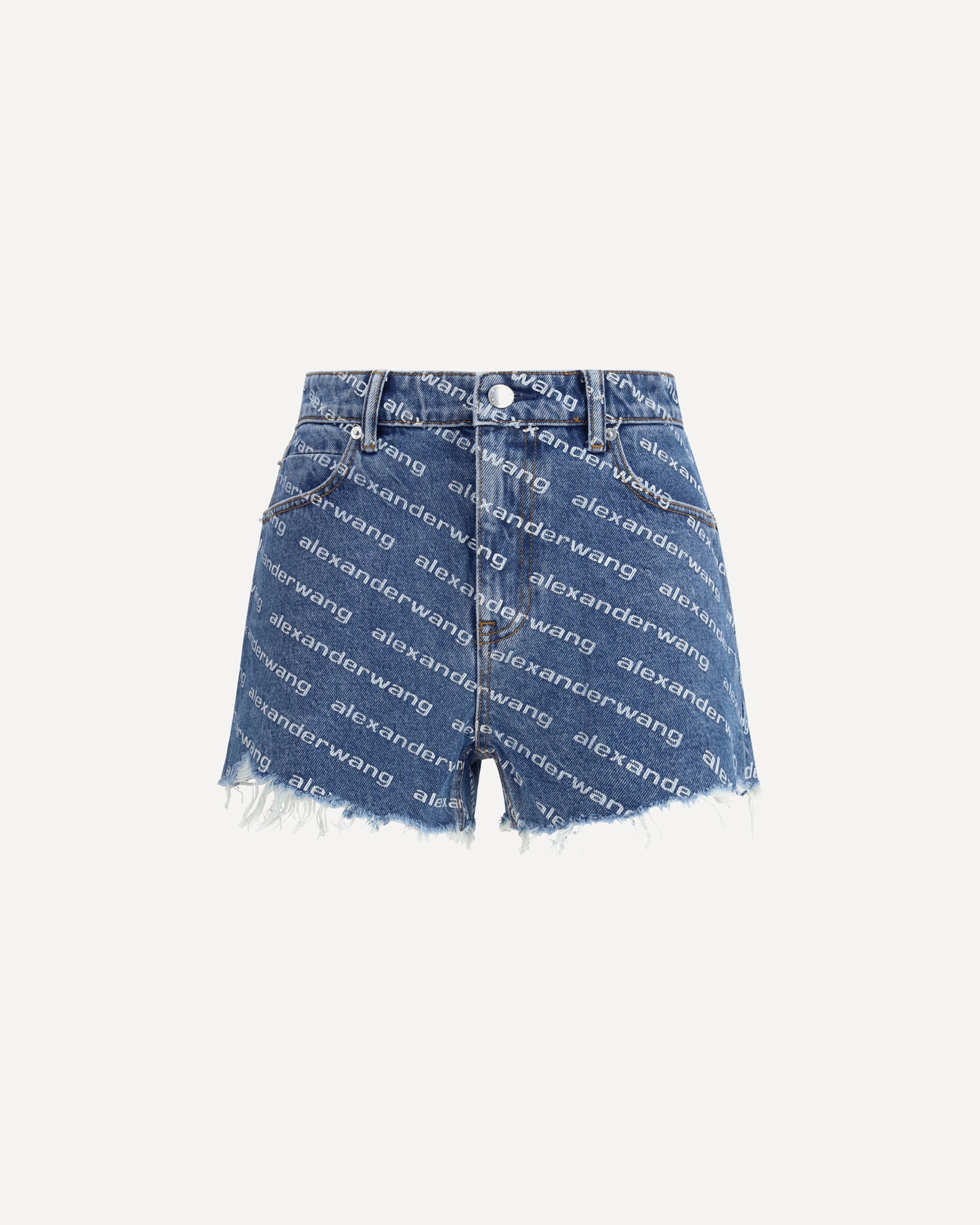 Alexander Wang's Bite denim Shorts stand out for their contrasting logo that decorates the entire surface, giving them a bold and recognizable touch. The five-pocket design, belt loops and zip and button closure recall the classic denim style, reinterpreted with the brand's contemporary aesthetic. DETAILS - Sku: 4DC1214897_460 - Season: AW25 - Fit: Regular - Composition: GENERAL 100% Cotton - MADE IN CHINA