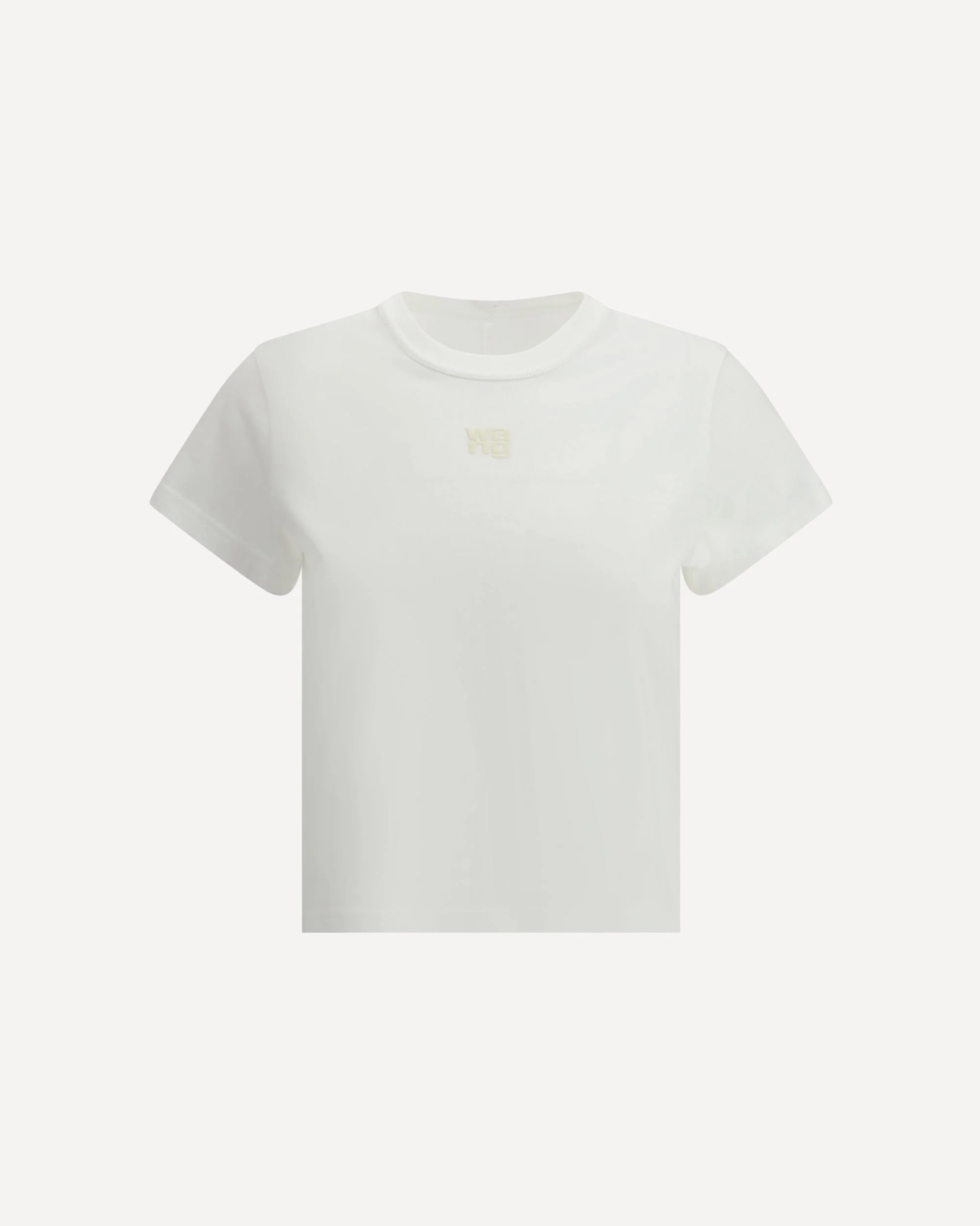 Alexander Wang's cotton T-Shirt features a ribbed crew neck that adds a refined detail to the design. The iconic tone-on-tone embossed logo on the front lends a distinctive, modern touch. The slim fit enhances the silhouette, making this garment stylish and versatile. A must-have that combines comfort and contemporary style. DETAILS sku 4CC3241521_100 composition: COTTON 100% color group: WHITE gender: WOMAN season: SS25 size chart: STANDARD category name: T-SHIRTS