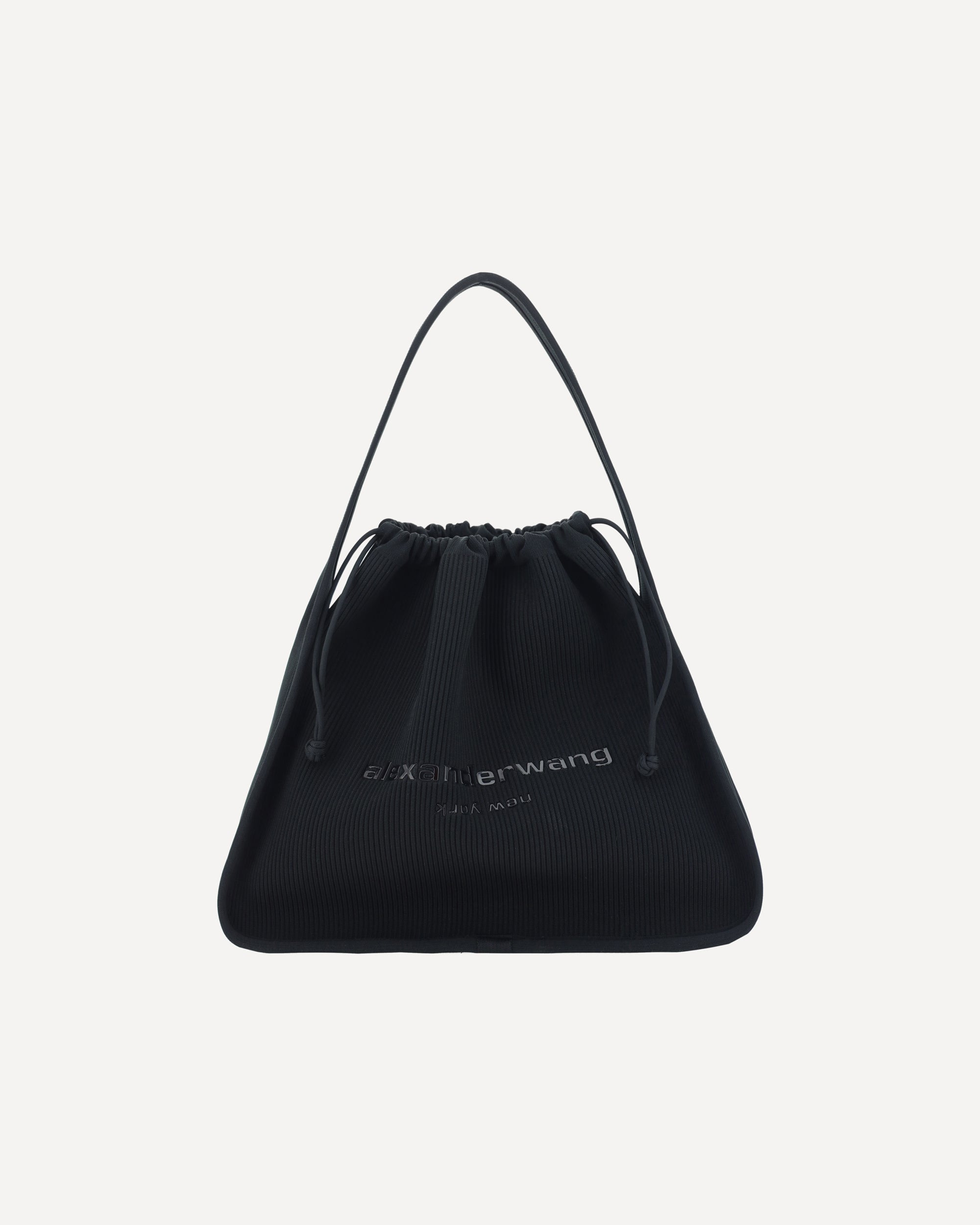 Ryan Large Handbag by Alexander Wang, top drawstring closure, single flat top handle, ribbed fabric design, iconic tone-on-tone brand signature on front. DETAILS sku 20422K21T_001 composition : POLYESTER 87% NYLON 13% color group : BLACK gender : WOMAN season : AW24 size chart : UNI category name : HANDBAGS dimensions : 38 x 30 x 11 cm