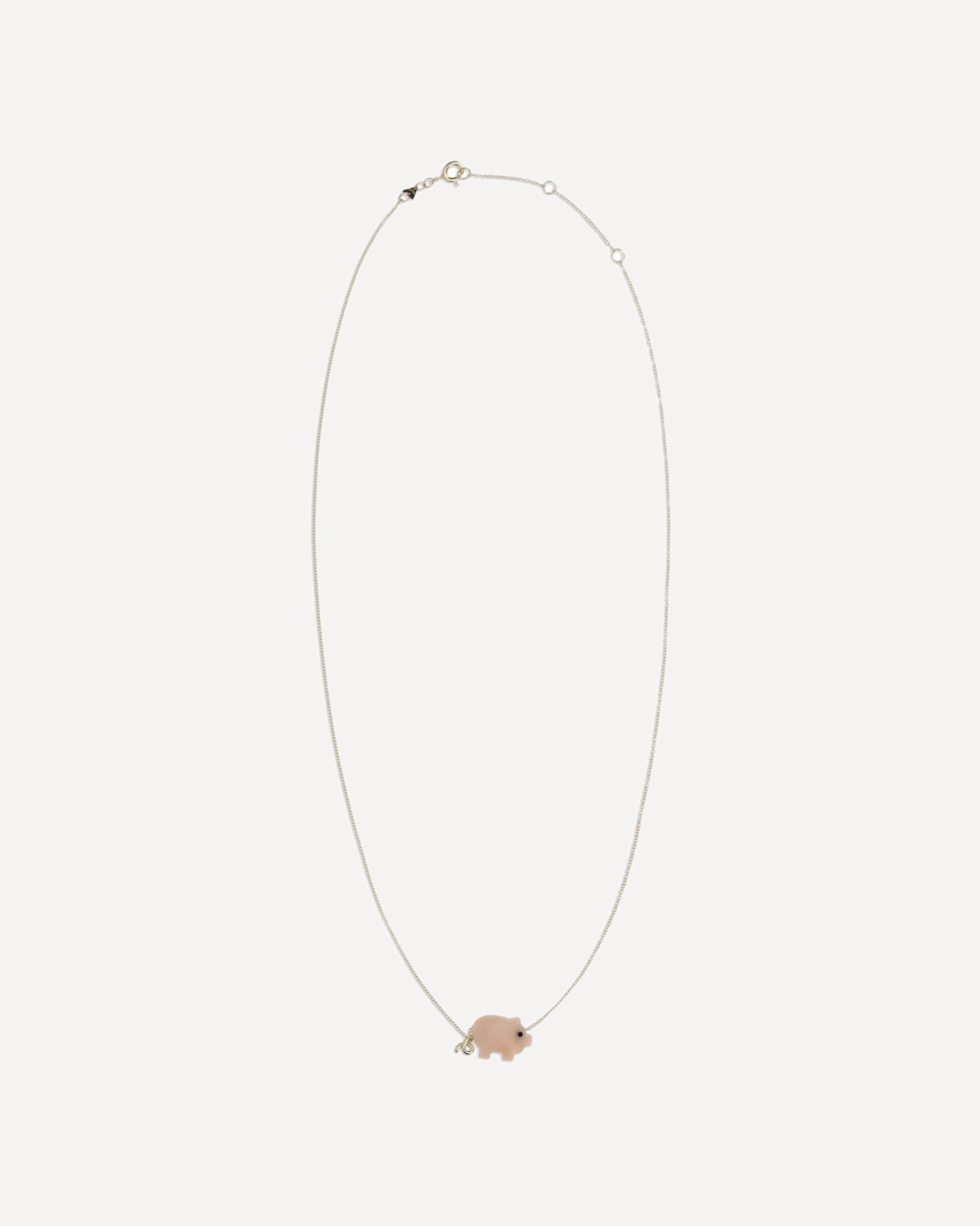 Piggy Necklace by Aliita combines irony and preciousness in a playful and refined design. The piggy-shaped pendant, made of pink coral and black Belgian marble, is mounted on a 9-karat yellow gold rolo chain with a ring clasp. A unique piece of jewelry that expresses lightness and character, perfect for those who love to wear small symbols with personal meaning and distinctive style. DETAILS - Sku: NRDCID00OVYG09K_J1000 - Season: SS26 - Composition: GENERAL 100% Others Materials - MADE IN ITALY