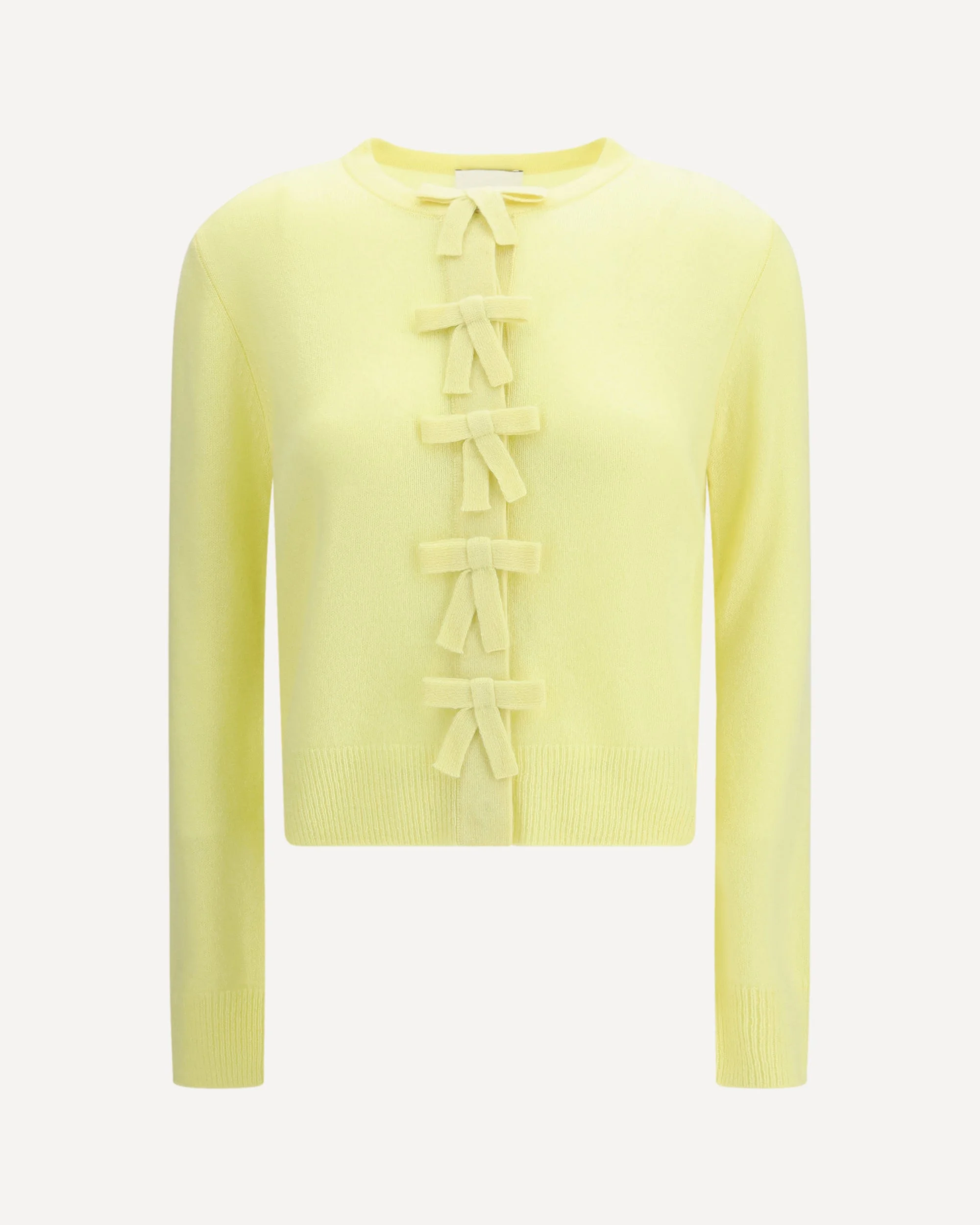 The cashmere Sweater with decorative ties by Allude embodies refined femininity through a luxurious and timeless design. Crafted from pure, evenly knit cashmere, it gently envelops the silhouette, delivering exceptional softness, lightness, and warmth without added weight. The concealed buttons hidden beneath the decorative ties introduce a subtle yet distinctive design element, adding understated appeal. The matte-knit texture softly absorbs light, highlighting the natural structure of the fiber, while the simple, slightly cropped cut with delicate ribbing at the waist and cuffs creates a balanced, versatile silhouette. Meticulous attention to detail is evident in the uniform stitching, folded hem, and beautifully finished interior, underscoring the brand’s craftsmanship. DETAILS - Sku: 26211140_20 - Season: SS26 - Fit: Regular - Composition: GENERAL 100% Kashmir/capra Hircus - MADE IN CHINA