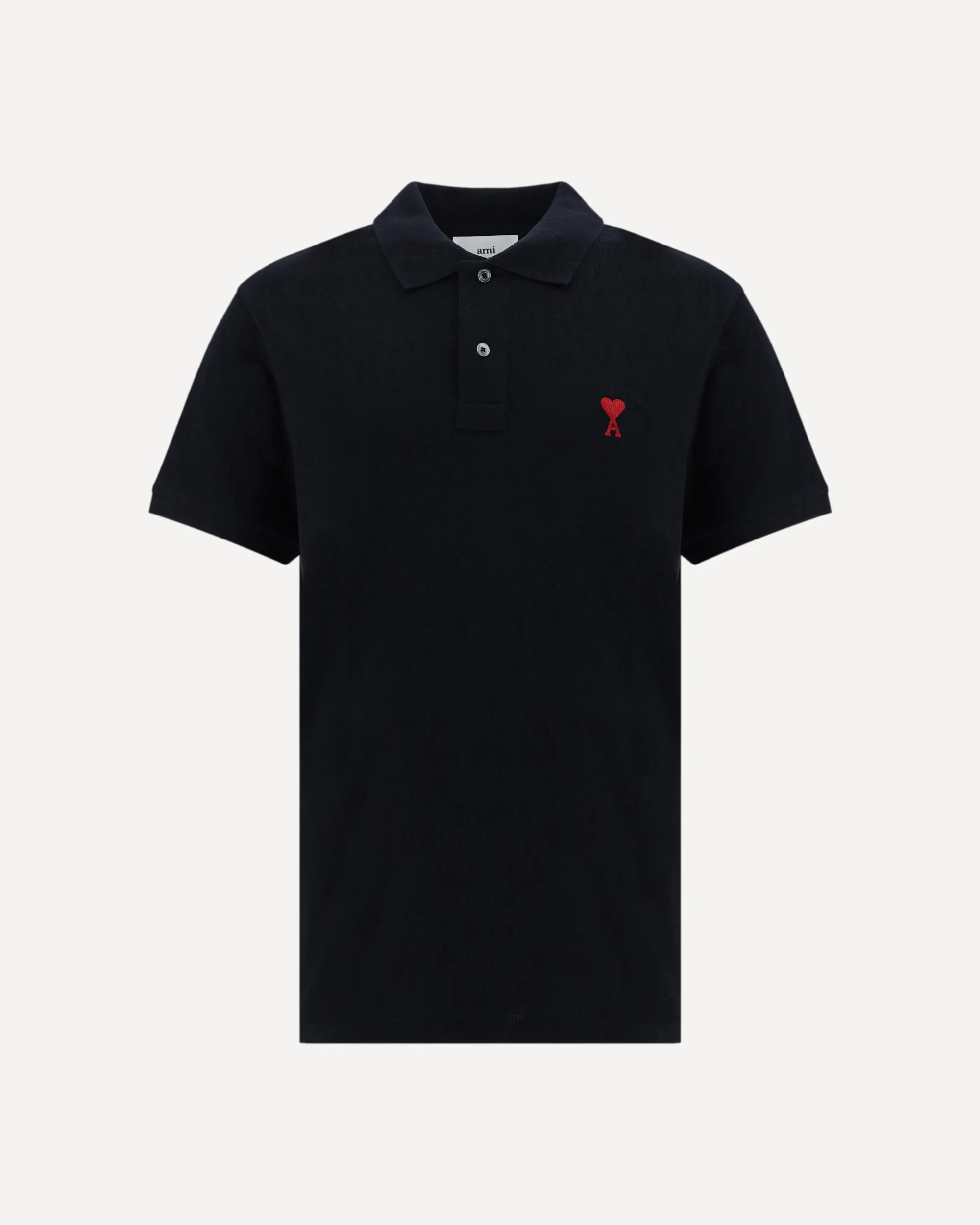 Cotton ADC Polo Shirt by Ami Paris, a classic collar, a front button fastening, a monochrome design, a contrasting embroidered iconic brand logo on the front, and a regular fit. DETAILS sku BFUPL001760_001 composition : COTTON 100% color group : BLACK gender : MAN season : AW23 size chart : MAN STANDARD category name : POLO SHIRTS