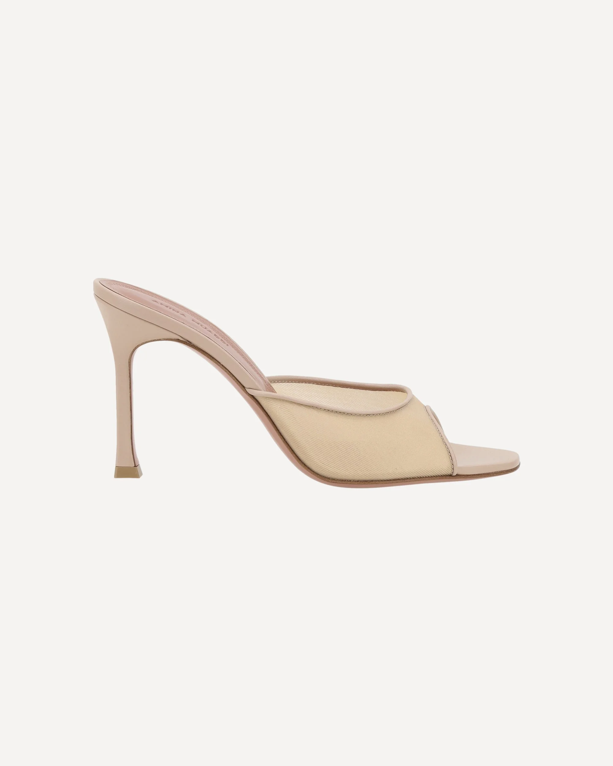 The Alexa Slipper Sandals in semi-transparent mesh combine elegance and sensuality in a refined design. The almond toe gives a delicate tapered shape, while the leather stiletto heel adds momentum and a note of sophisticated femininity. Transparent mesh lends a light and modern touch, while the logoed insole expresses the brand's authenticity. A bold and chic pair of sandals, perfect for an elegant and contemporary look. DETAILS sku 13S362759ALE_BEIGE composition: CALF LEATHER BOS TAURUS 100% FABRIC 100% color group: BEIGE gender: WOMAN season: SS25 size chart: SHOES IT category name: SANDALS dimensions: 9.5 cm