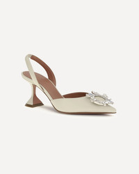 The Begum Pumps by Amina Muaddi are an icon of elegance and femininity. Characterized by an elongated almond toe and a refined slingback detail on the heel, they feature a geometric leather heel that expresses all the brand's distinctive aesthetic. An embossed jewel, studded with rhinestones and diamonds, stands out on the toe, lending light and character. Completing the design is a leather insole with a press-on logo for a final touch of understated luxury. DETAILS - Sku: 15S365640BEG_ALMOND - Season: AW25 - Composition: GENERAL 100% Calf Leather Bos Taurus - MADE IN ITALY