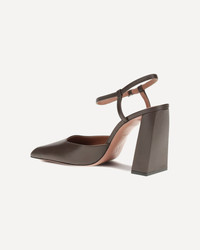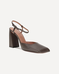 Charlotte patent leather Pumps by Amina Muaddi are an expression of bold, modern elegance. The adjustable buckle strap around the ankle ensures a secure and personalized fit, while the patent leather design adds shine and sophistication. The geometric toe on the front lends a contemporary, structured touch, while the sculptural heel offers height and a sleek profile with a unique, attention-grabbing design. The logo-embossed insole completes the design, adding a distinctive detail. DETAILS - Sku: 15S365667CHA_COFFEESILV - Season: AW25 - Composition: GENERAL 100% Calf Leather Bos Taurus - MADE IN ITALY