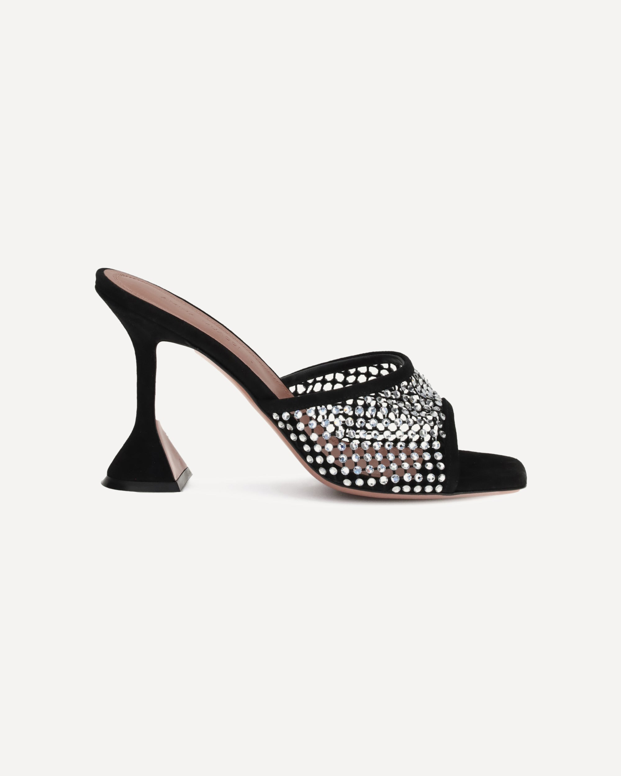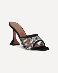 LUPITA CRYSTAL NET SLIPPER BLACK SUEDE AND WHITE CRYSTALS
