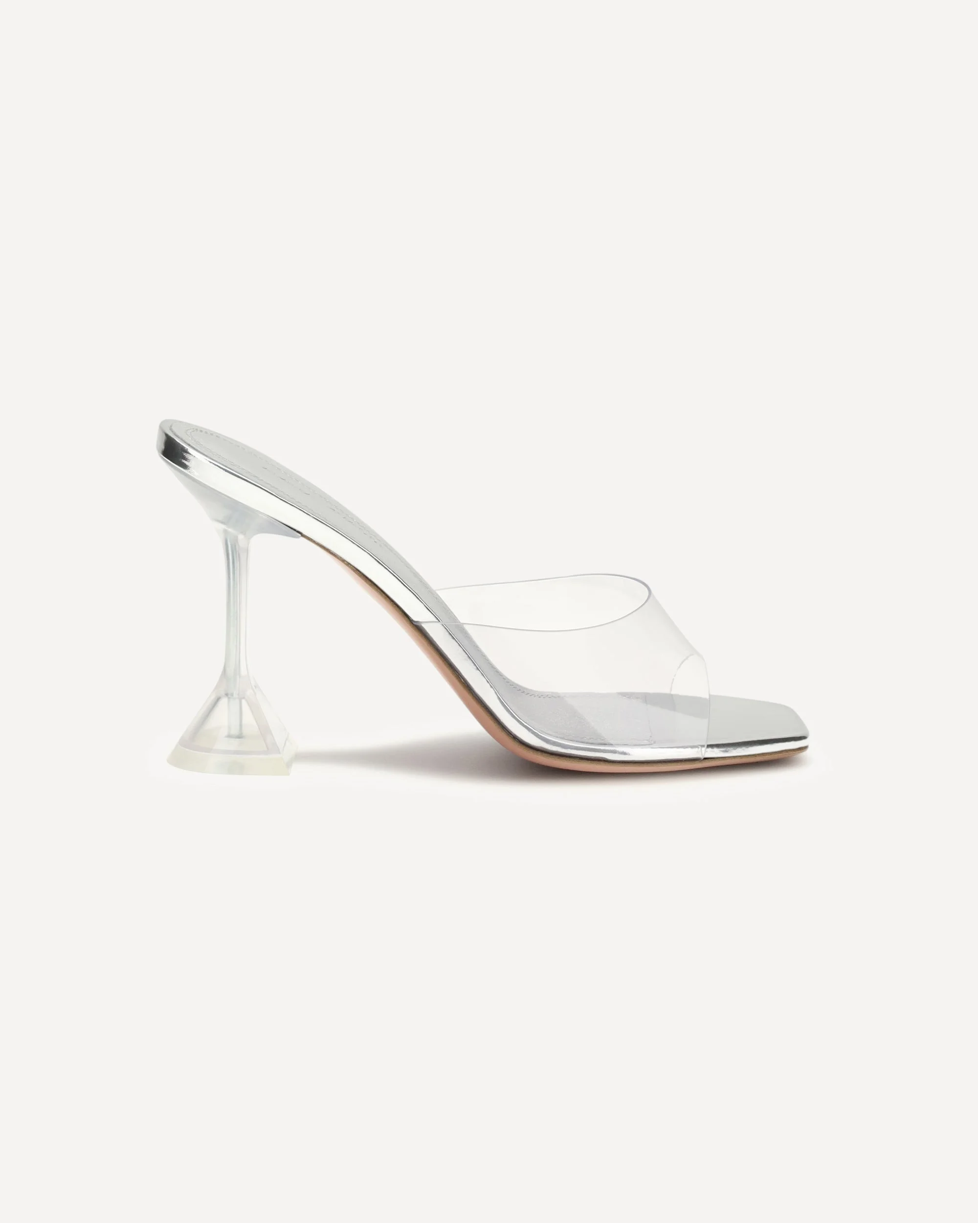 The Lupita Glass Sandals by Amina Muaddi are an ode to contemporary elegance, with a square toe that adds a bold, modern touch. The distinctive, refined geometric heel adds an architectural element to the design. The semi-transparent front strap creates a delicate, sensual effect, while the embossed logo insole emphasizes the brand's authenticity. DETAILS - Sku: 8S321759LUP_TRANSPAREN - Season: SS26 - Composition: SOLE 100% Calf Leather Bos Taurus UPPER 100% Pvc - MADE IN ITALY