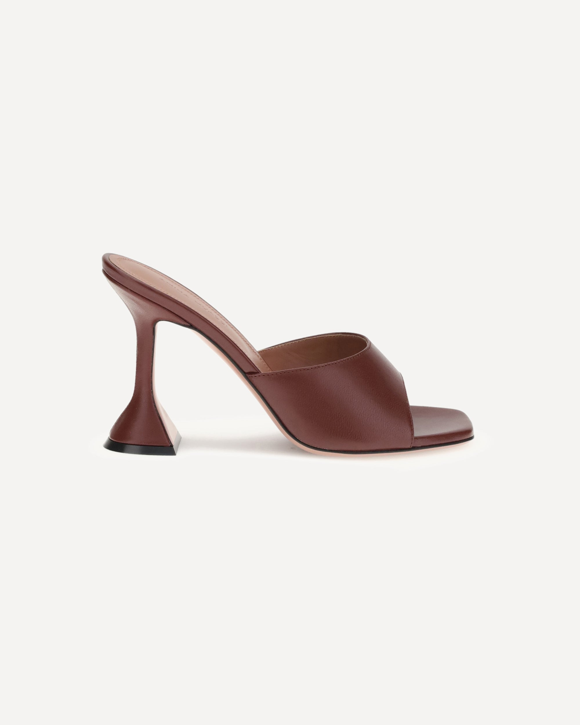 Lupita Sandals by Amina Muaddi represent the perfect balance between elegance and modernity. The front strap adds a fresh and original touch to the design, while the squared toe defines a sharp and contemporary line. The iconic geometric heel, the brand's unmistakable signature, gives the shoe a sculptural and distinctive look. A bold and sophisticated model, designed for those who want to stand out with a unique and sophisticated style. DETAILS - Sku: 8S320725LUP_WINE - Season: AW25 - Composition: GENERAL 100% Calf Leather Bos Taurus - MADE IN ITALY