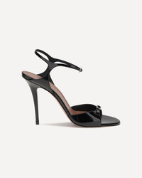 Amina Muaddi's Adut Sandals embody elegance and femininity in a striking design. Made of patent leather, they stand out for their sleek stiletto heel and buckle closures embellished with rhinestones, featured on both the ankle and upper. A sophisticated model, perfect for adding a sparkling touch to evening looks or special occasions. DETAILS - Sku: 14S363447ADU_BLACKWHITE - Season: AW25 - Composition: UPPER 100% Calf Leather Bos Taurus SOLE 90% Calf Leather Bos Taurus 10% Thermoplastic Polyurethane - MADE IN ITALY