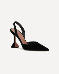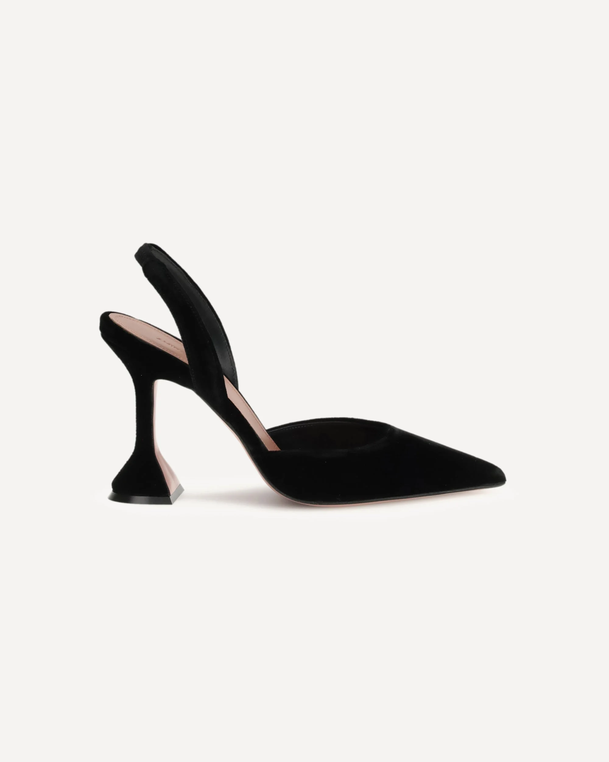 The velvet pointed toe high heel slingback Pumps by Amina Muaddi feature a velvet finish for a luxurious touch and a pointed toe that elongates the silhouette. The signature sculpted heel adds modern elegance, while the slingback strap ensures a refined and comfortable fit. DETAILS - Sku: 15S365713HOL_BLACK - Season: AW25 - Composition: SOLE 100% Rubber UPPER 100% Double Velvet - MADE IN ITALY