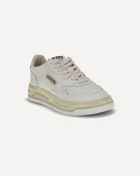 Autry Medalist x Mihara is an exclusive capsule collection that combines Autry’s rich heritage with the avant-garde vision of Maison MIHARA YASUHIRO General Scale. The sneakers, created in collaboration with Maison Mihara Yasuhiro General Scale, are made of white leather and feature a rounded perforated toe, a heel tab with embossed logo, lace-up closure, a vintage-textured midsole, a branded tongue, and a rubber sole. DETAILS - Sku: AVLWMMY1_WHITE - Season: AW25 - Composition: GENERAL 100% Leather SOLE 100% Rubber - MADE IN INDONESIA
