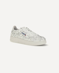The Blooming Medalist Sneakers by Autry combine sporty style and feminine details. Featuring front lacing and a round toe, they feature leather flower appliques with metallic stud throughout the shoe and logo details. A rubber sole completes the model, ensuring comfort and durability DETAILS - Sku: AULWPW02_WHT - Season: AW25 - Composition: UPPER 100% Calf Leather Bos Taurus SOLE 100% Rubber - MADE IN ITALY