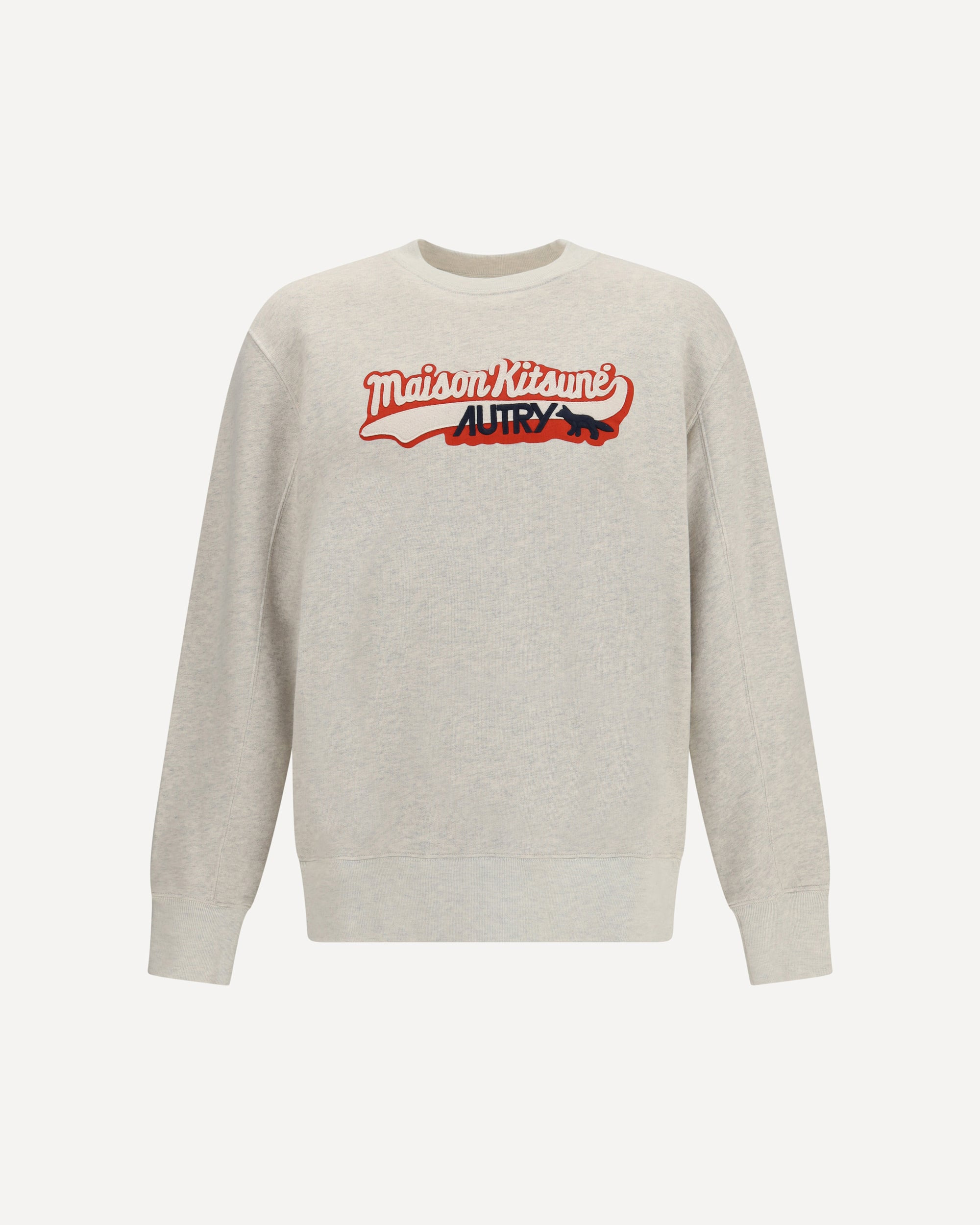 The Cotton Sweatshirt Autry x Maison Kitsune combines comfort and style with a clean design enhanced by a logo applique on the chest. The classic crewneck, long sleeves, and ribbed finishes at cuffs and hem ensure a comfortable fit and a laid-back look, perfect for everyday wear. DETAILS - Sku: SWPXMK1M_MEL - Season: AW25 - Fit: Regular - Composition: GENERAL 100% Cotton