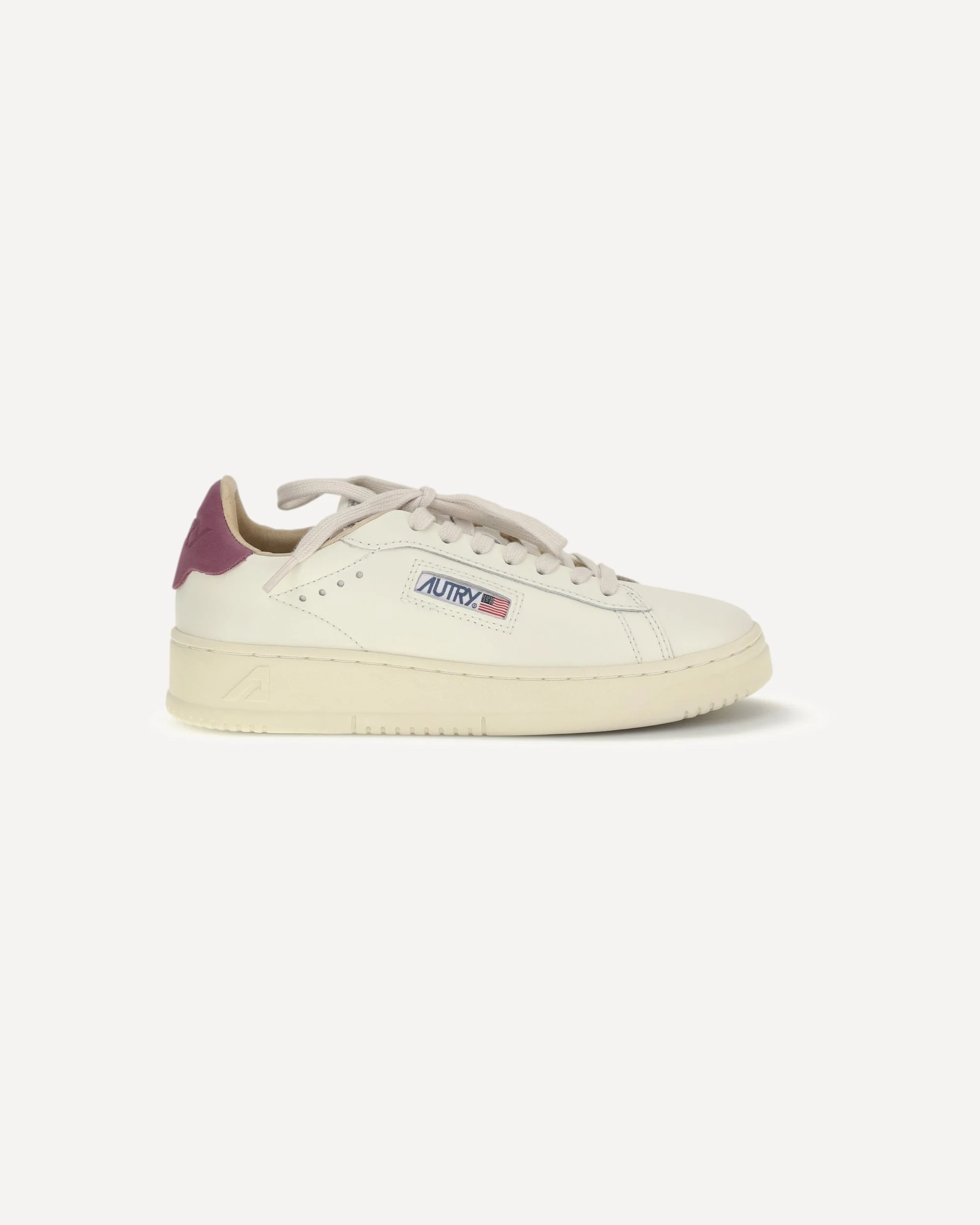 The Dallas Low Sneakers by Autry are an iconic model with a casual-chic design. With a round perforated toe and front lace-up closure, they feature a leather tongue with a tone-on-tone logo label. The contrasting heel tab with embossed logo adds a distinctive touch, while the logo-embossed leather insole and two-tone signature sole ensure comfort and style. The stars and stripes flag with logo on the side completes the look, making these sneakers a must-have for those looking for a mix of quality and trends. DETAILS - Sku: ADLWMR20_MRSHFLOR - Season: SS26 - Composition: UPPER 100% Calf Leather Bos Taurus SOLE 100% Rubber - MADE IN INDONESIA