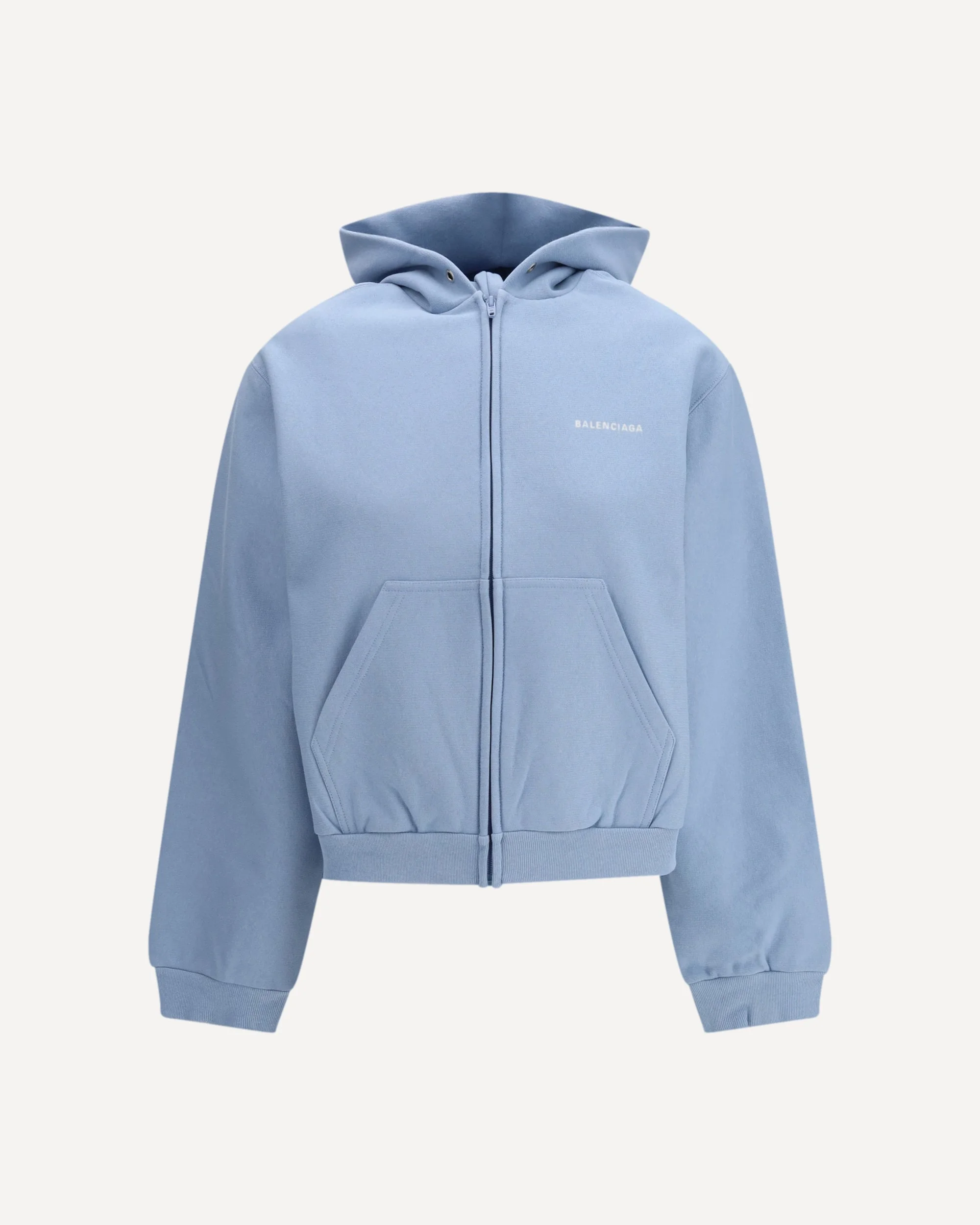 Women's Balenciaga Back Zip-up Hoodie Regular Fit in Light Blue/white