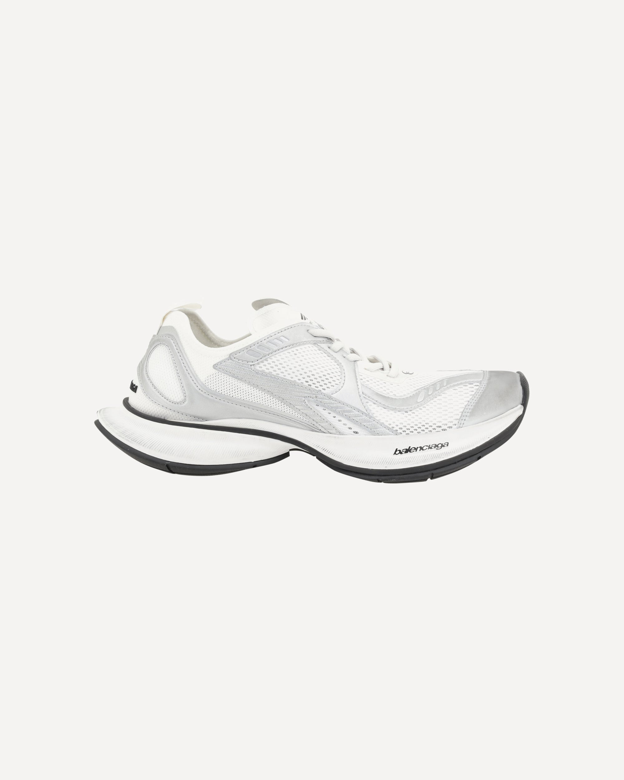Balenciaga's Circuit Sneakers feature a textured platform sole that gives a modern look. The paneled design combines materials such as leather and technical fabrics, creating a visually interesting and dynamic structure. The closure is with front laces for an adjustable fit. Balenciaga's iconic monogram is printed on the side and back, while the logo also appears on the sole and insole, adding a touch of exclusivity. These sneakers combine style, comfort and the brand's distinctive creativity. DETAILS sku 793945WFLGY_9100 composition: POLYURETHANE 50% FABRIC 50% RUBBER 100% color group: WHITE gender: MAN season: SS25 size chart: SHOES IT category name: SNEAKERS icon: icon
