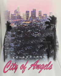 Balenciaga's City of Angels Hoodie combines comfort and urban identity in an essential yet striking design. Made of dry fleece, it features sloping shoulders, front pouch pocket and gathered trim on cuffs and waist. The drawstring-free hood and "City of Angels" print on the front complete the look with a contemporary and distinctive touch. DETAILS - Sku: 767877TSVR3_9012 - Season: AW25 - Fit: Regular - Composition: GENERAL 100% Cotton - MADE IN PORTUGAL