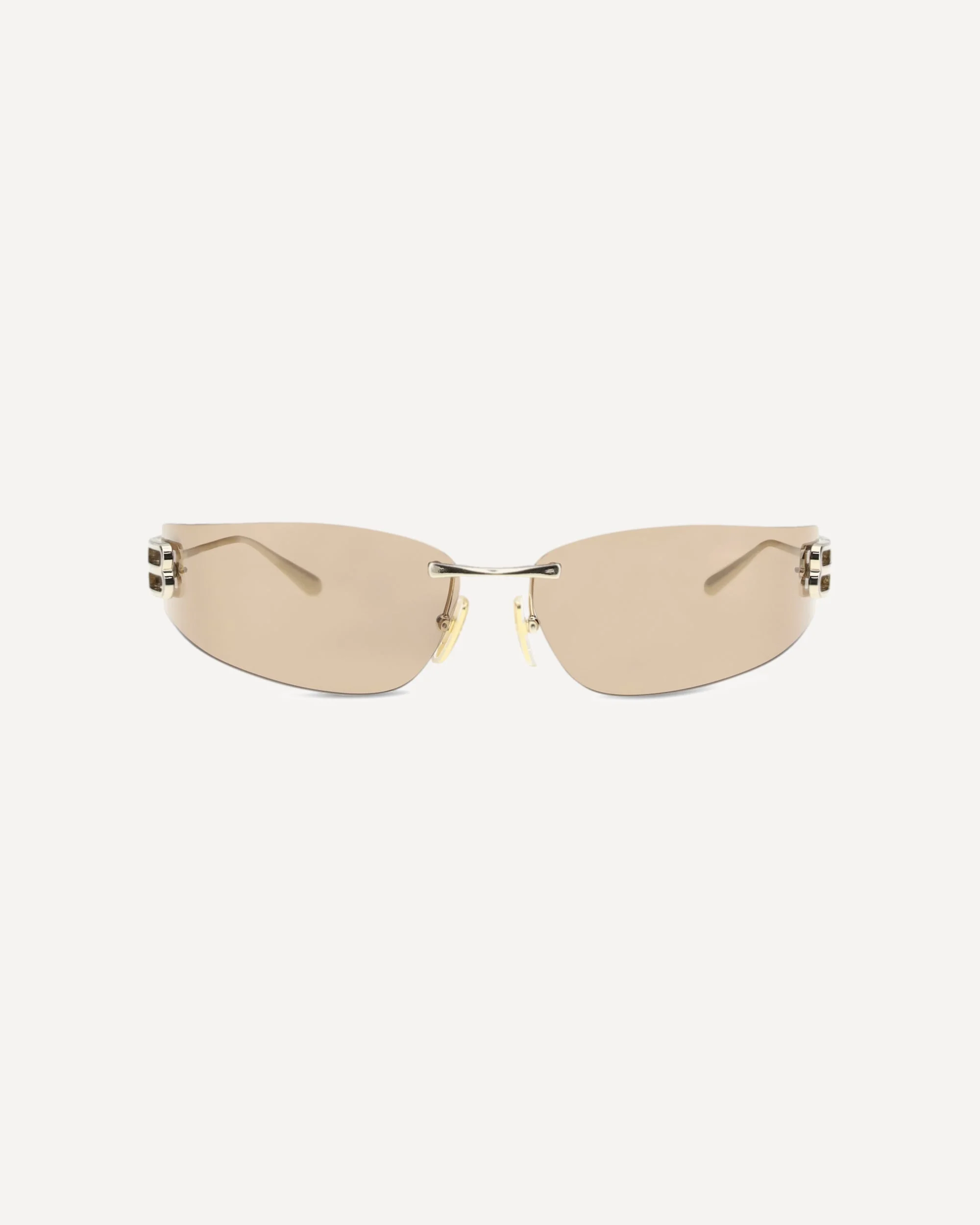 The D-frame Gossip Sunglasses by Balenciaga combine bold design and functionality. With an all-metal frame and temples, the D-frame model features Bio-Nylon lenses with curved sides, hidden hinges in the BB logo, and adjustable nose pads also featuring the BB logo, ensuring comfort and contemporary style. DETAILS - Sku: 858880T0005_8248 - Season: SS26 - Composition: GENERAL 100% Metal Metallic Metallised - MADE IN JAPAN
