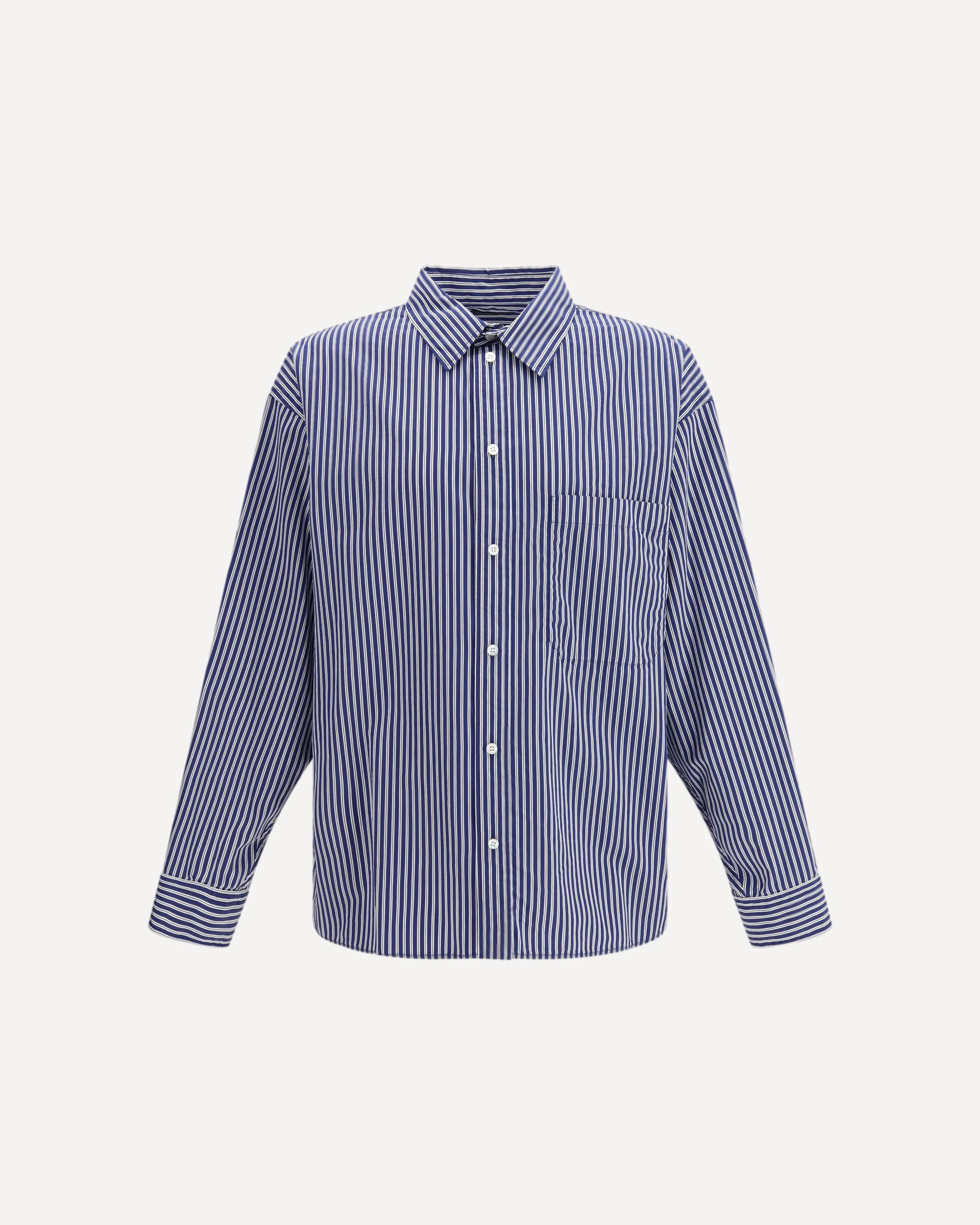 The embroidered poplin oversized Shirt by Balenciaga is crafted from a cotton-blend poplin and features all-over striped embroidery. The design is enhanced by a Balenciaga application on the sleeve and includes a short-point collar, front button fastening, and a chest patch pocket. Angular buttoned cuffs and a back yoke with pleats complete the piece, giving it a modern oversized silhouette. DETAILS - Sku: 857814TTM34_8502 - Season: SS26 - Fit: Regular - Composition: GENERAL 87% Cotton 13% Nylon - MADE IN ITALY