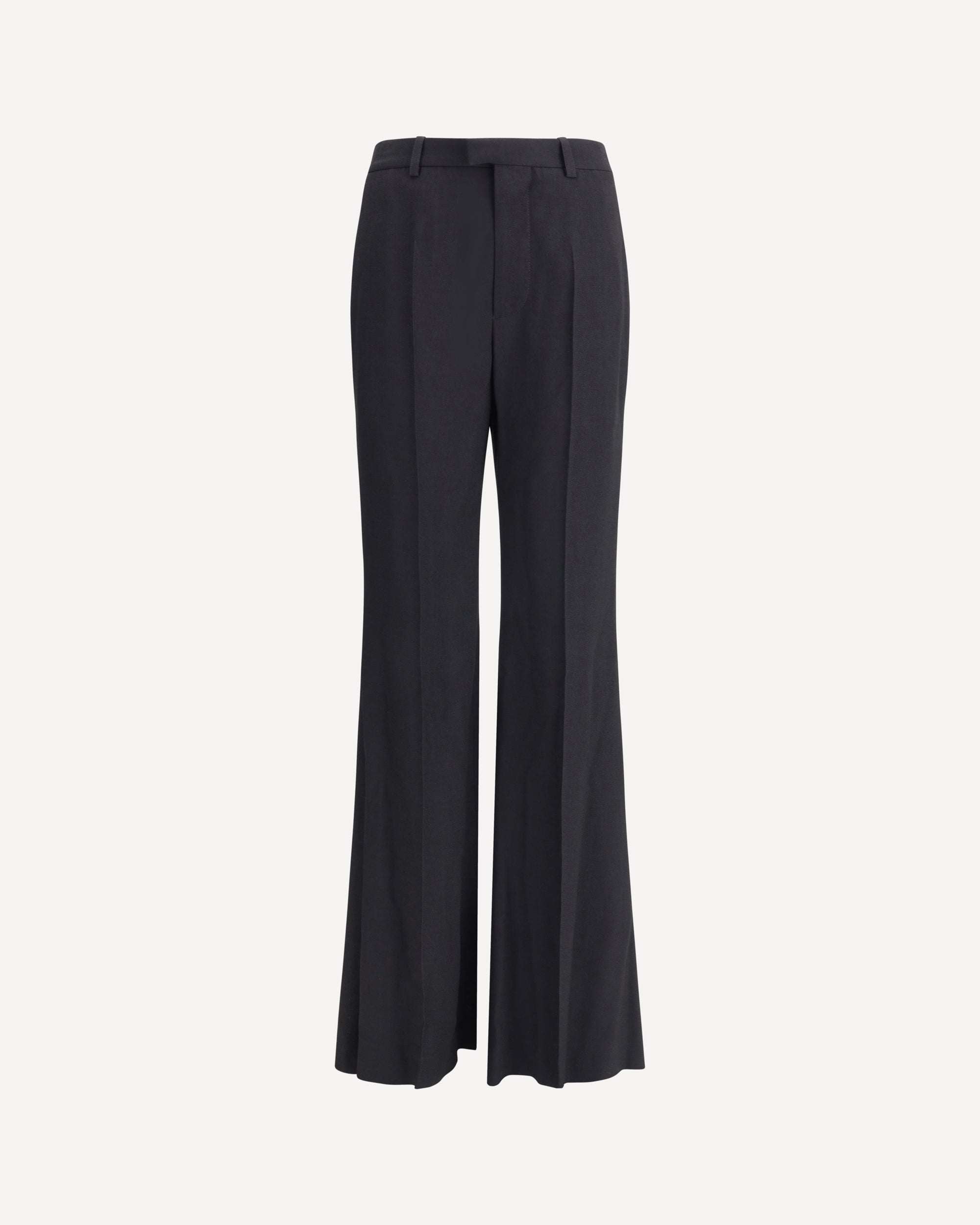 Balenciaga's flare Pants have a sleek and contemporary cut. The model features a zipper and button closure, belt loops at the waist and two side slash pockets. The flared silhouette enhances the figure, making the garment ideal for sophisticated yet stylish looks. DETAILS - Sku: 843495TSO17_1000 - Season: AW25 - Fit: Regular - Composition: GENERAL 100% Viscose - MADE IN ITALY