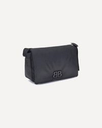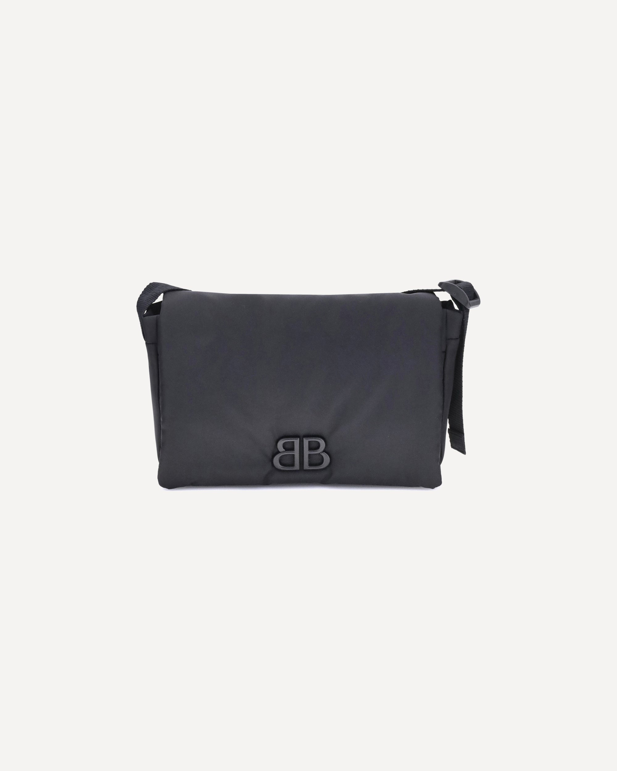Balenciaga's Monaco Shoulder Bag, made of lightweight and durable nylon, stands out for its minimalist and functional design. The top flap with magnetic closure ensures practicality, while the adjustable shoulder strap allows for personalized wear. Essential and elegant, it is complemented by a tone-on-tone logo plaque that lends discretion and modernity. The interior features a single compartment. Ideal for an urban look with a contemporary spirit. DETAILS - Sku: 8066302ABFB_1000 - Season: AW25 - Dimension: 26x26x7.5 - Composition: GENERAL 100% Polyamide - MADE IN ITALY