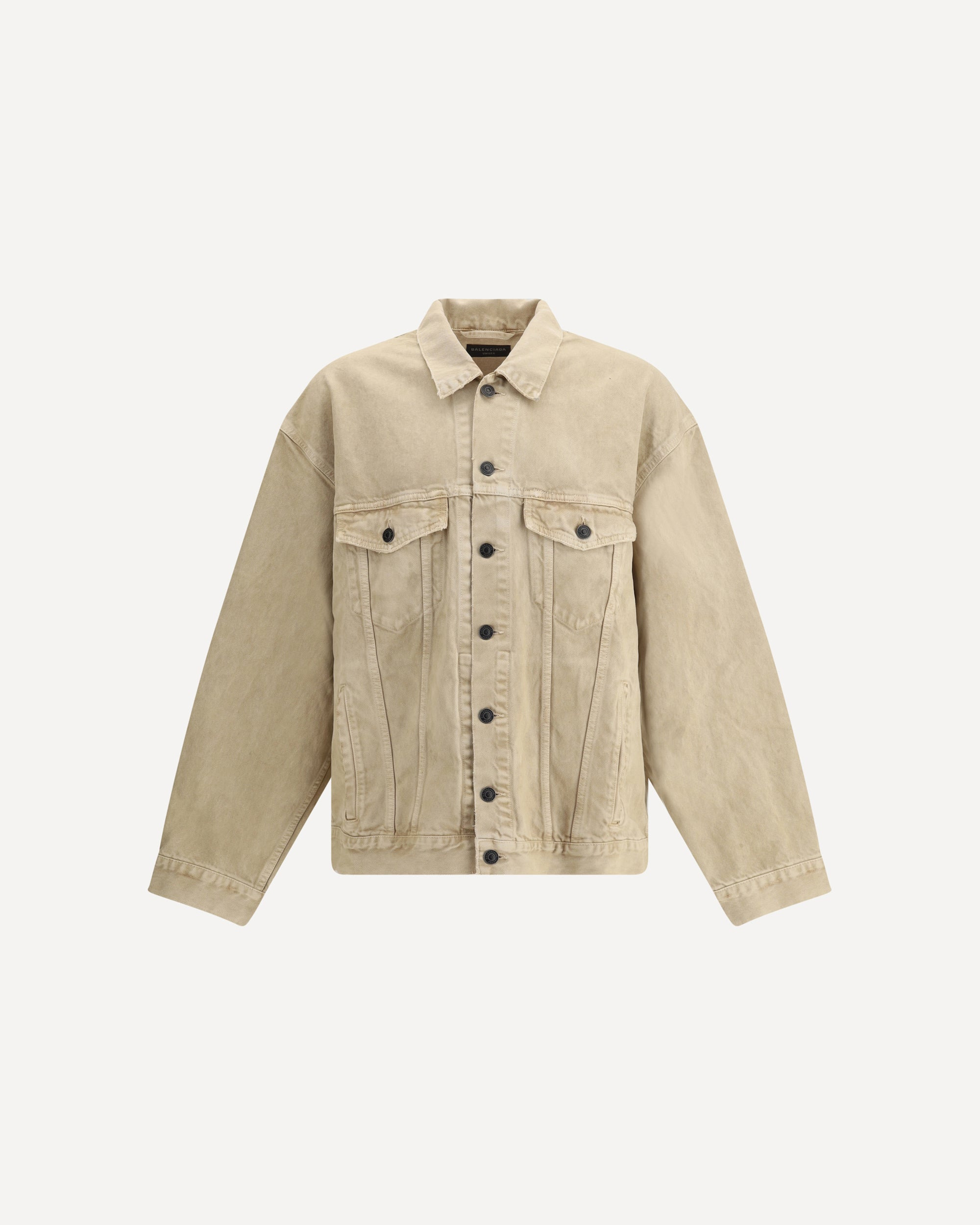 The oversized Denim Jacket by Balenciaga features a 7-button closure, front flap pockets and side slit pockets. Adjustable cuffs and waist with Balenciaga engraved metal buttons. The embroidered logo on the back elegantly signs this iconic garment. DETAILS - Sku: 844891TSWB2_9501 - Season: AW25 - Fit: Oversize - Composition: GENERAL 100% Cotton - MADE IN JAPAN