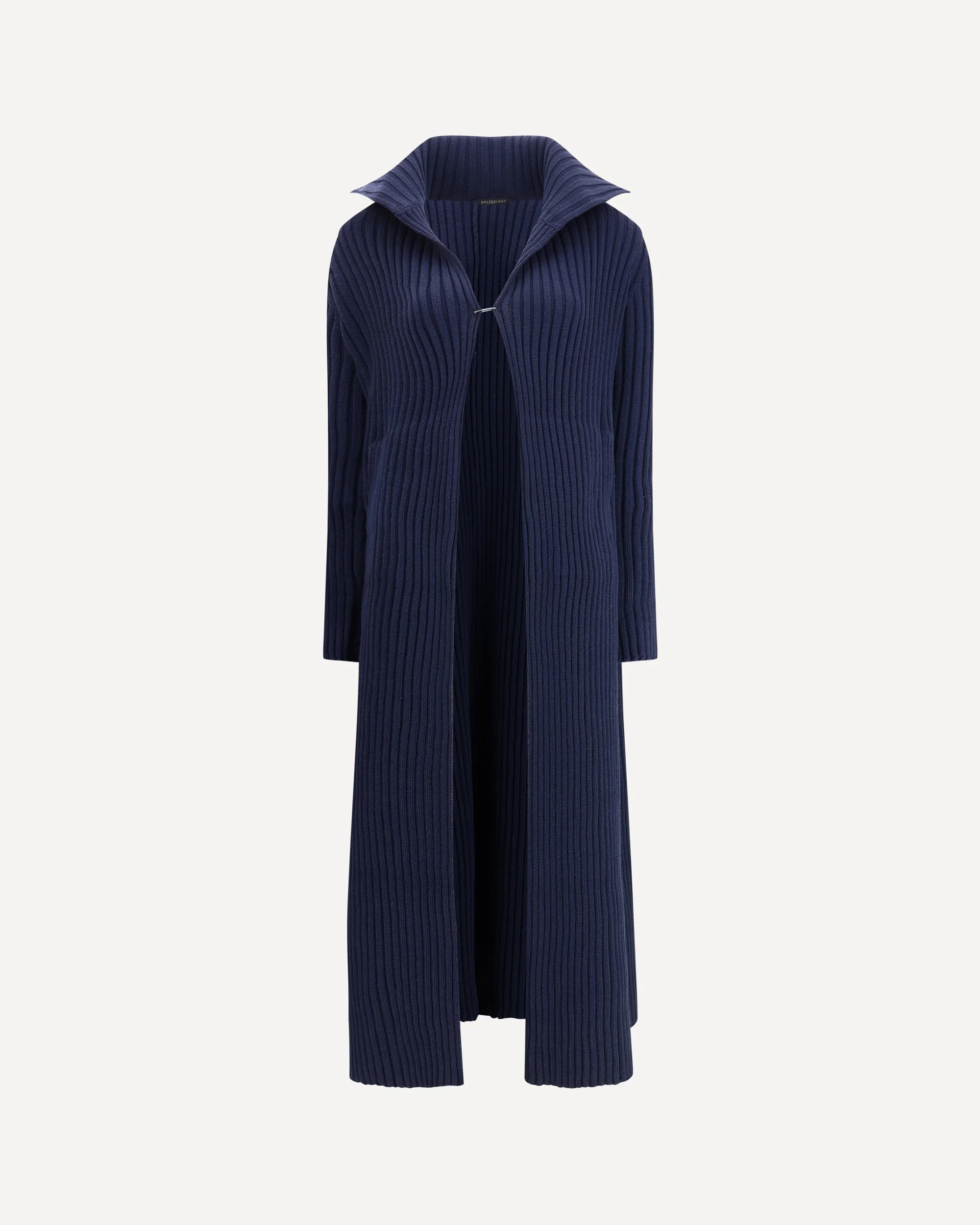 The Ribbed Shawl-Collar Cardigan by Balenciaga embodies understated luxury with its elongated silhouette and distinctive textural depth. Crafted in ribbed knit, it wraps the body with fluid ease, while the generous shawl collar frames the neckline with contemporary elegance. Designed with long sleeves and a maxi length, it offers a versatile layering piece that shifts effortlessly from casual sophistication to statement outerwear. Minimal yet bold, it captures the house’s vision of modern refinement. DETAILS - Sku: 849997T3414_8806 - Season: AW25 - Fit: Regular - Composition: GENERAL 55% Polyester 45% Cotton - MADE IN ITALY
