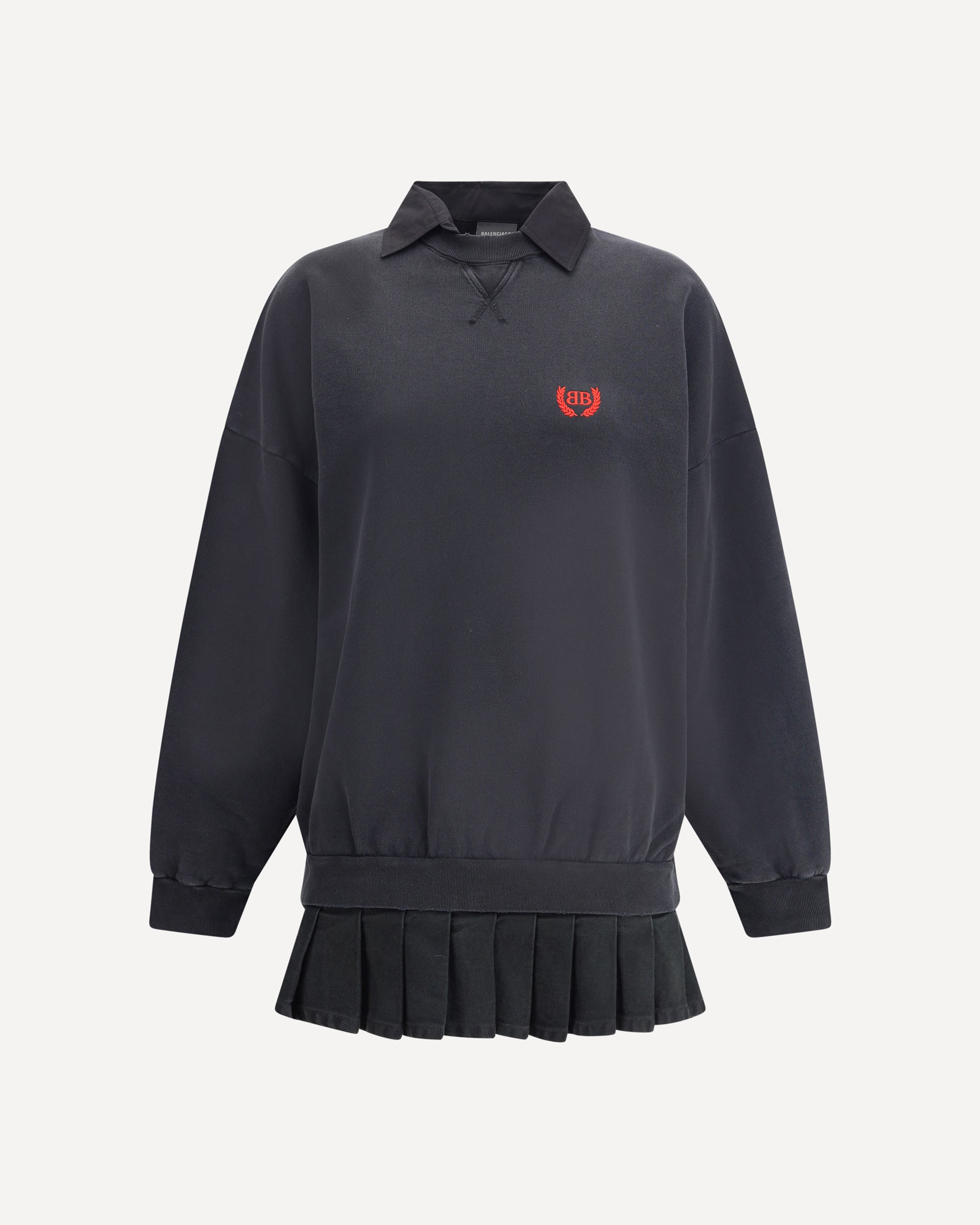 Balenciaga's swatshirt Dress blends casual style and iconic details in a worn-in design. Featuring a ribbed crew neck and cuffs, it features an embroidered logo on the front and a pleated skirt that adds movement and femininity to the oversized silhouette. DETAILS - Sku: 838975TSVC6_1041 - Season: AW25 - Fit: Regular - Composition: GENERAL 100% Cotton - MADE IN PORTUGAL