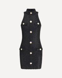 Button-embellished Bouclé Jacquard-knit Mini Dress