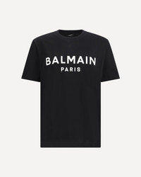 The cotton T-shirt with Balmain print is crafted from soft jersey and features a classic crew neckline and short sleeves. The Balmain Paris print on the front adds a distinctive and instantly recognizable touch, while the regular fit ensures a clean and timeless silhouette. DETAILS - Sku: GH1EG000BD45_EAB - Season: SS26 - Fit: Regular - Composition: GENERAL 100% Cotton - MADE IN PORTUGAL