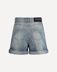 Balmain's Denim Shorts combine a bold aesthetic with iconic details. Featuring a refined diamond-stitched pattern, they feature a waistband with belt loops and the unmistakable triple back loop. The front closure is embellished with metal "Gold and Silver Coin" buttons and a zipper under the flap. Completing the design are two knight pockets on the front for a bold and recognizable look. DETAILS - Sku: FF1MA155DF79_6FC - Season: AW25 - Fit: Regular - Composition: GENERAL 100% Cotton - MADE IN ITALY