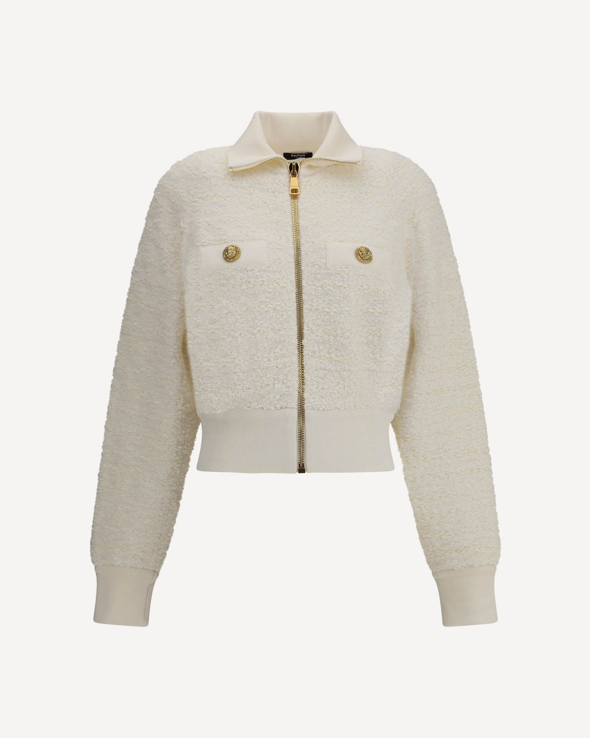 The Tweed Bomber Jacket by Balmain reimagines a sporty classic with the Maison’s unmistakable elegance. Featuring a high collar and batwing long sleeves, it offers volume and modernity, while the decorative side pockets are detailed with the iconic Lion Head buttons. A sophisticated piece that blends sartorial tradition with contemporary style. DETAILS - Sku: FF0TE200KJ16_0KA - Season: AW25 - Fit: Regular - Composition: GENERAL 55% Viscose 13% True Hemp 8% Wool 10% Polyamide 8% Cotton 6% Polyester