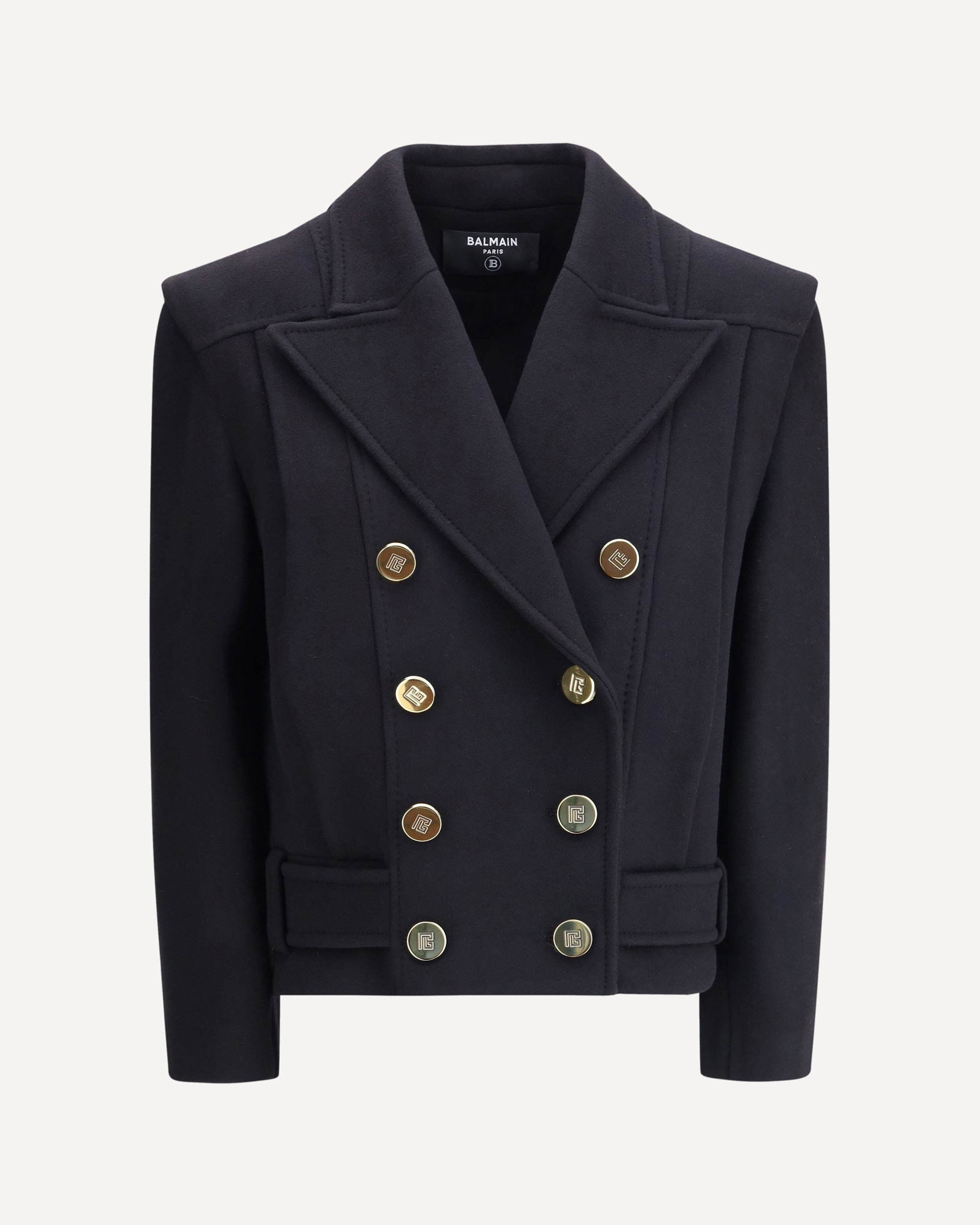 The double-breasted coat by Balmain combines sophistication with contemporary modernity. Crafted from fine wool, its streamlined silhouette with broad shoulders and wide lapels flatters the figure, while the engraved gold buttons, decorative stitching, and rear belt add distinctive details and a timeless urban style. DETAILS - Sku: FF1UA095WD10_0PA - Season: AW25 - Fit: Regular - Composition: GENERAL 75% Wool 25% Polyamide - MADE IN FRANCE