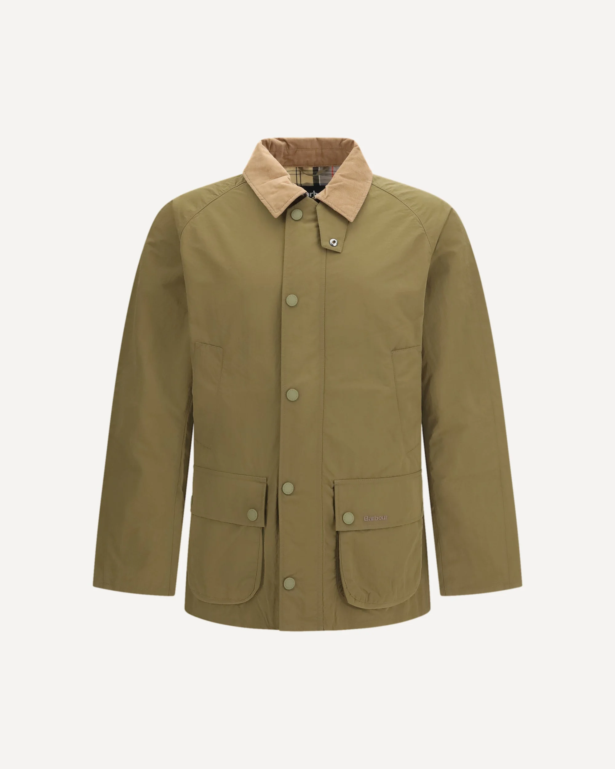 The Ashby rain Jacket by Barbour offers a modern reinterpretation of one of the brand’s most iconic styles. Inspired by the classic waxed Ashby jacket, this version features a water-repellent finish designed for warmer seasons. The signature fine ribbed collar reflects Barbour’s heritage aesthetic, while the front zip and snap-button fastening provide practical structure. Handwarmer pockets and lower bellows pockets complete the design, making this jacket a reliable and timeless choice for everyday wear. DETAILS - Sku: MSP0096_OL55 - Season: SS26 - Fit: Regular - Composition: GENERAL 100% Polyamide - MADE IN VIETNAM