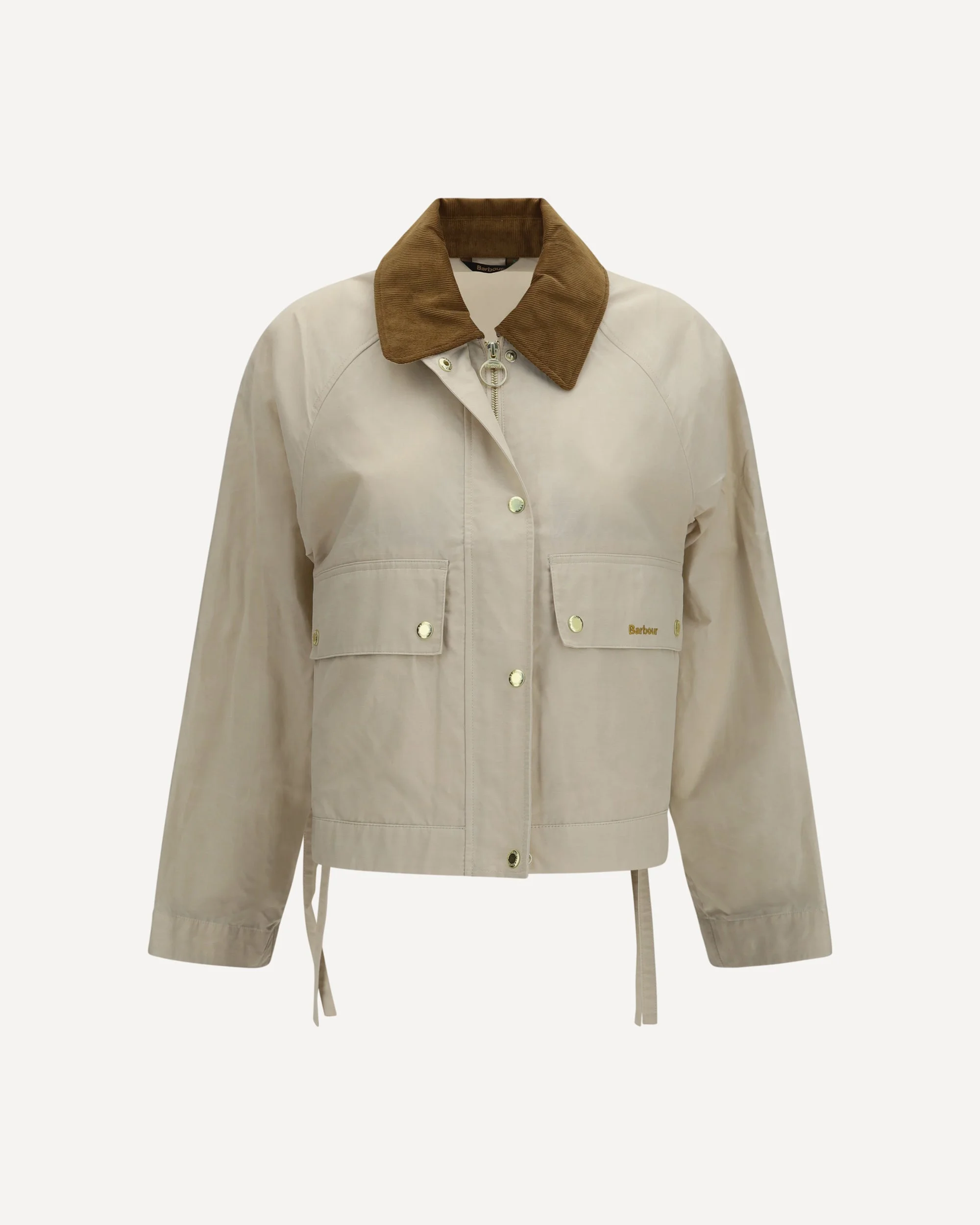The Medland rain Jacket by Barbour stands out for a contemporary silhouette that reinterprets the classic archive Spey model with a modern approach. The jacket model by Barbour is crafted from a light beige cotton blend and features a thin ribbed brown collar that defines the structure of the garment. The cropped cut with a slightly longer back hem creates a balanced silhouette. Side fabric ties allow the fit to be adjusted, while the front zip and snap-button closure add practicality and protection. Flap pockets with snap buttons, adjustable sleeves and tartan turn-ups recall the brand’s iconic heritage. The Medland jacket by Barbour completes the design with a comfortable and contemporary fit. DETAILS - Sku: LSP0304_CR31 - Season: SS26 - Fit: Regular - Composition: GENERAL 70% Cotton 30% Nylon - MADE IN VIETNAM