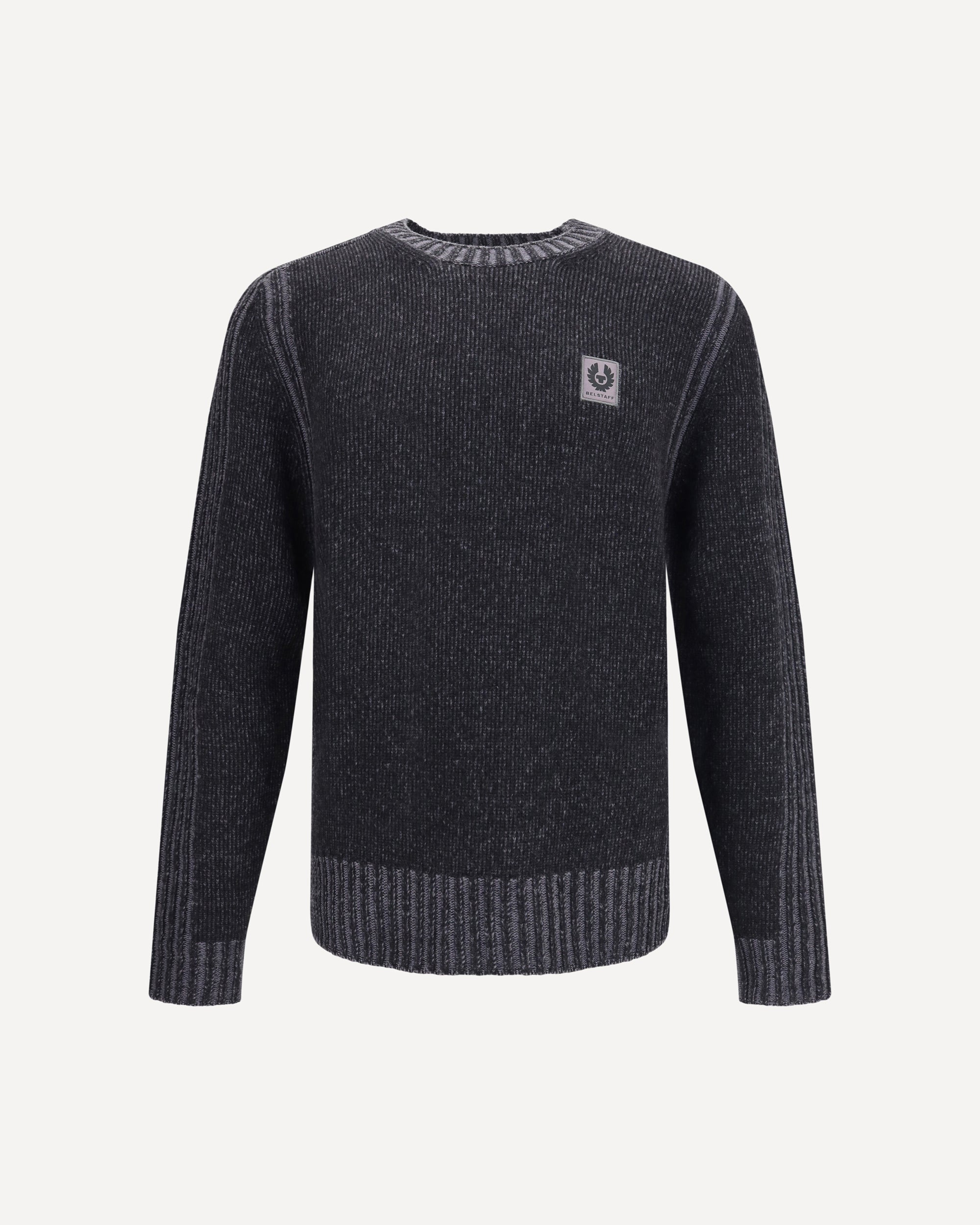 The Seasonal Watch Sweater by Belstaff combines tradition and modernity through its melange knit design. The style features a classic crew neck with ribbed cuffs, collar, and hem for added structure and comfort. A branded patch is applied to the upper left side, serving as a distinctive detail that enhances the clean design. DETAILS - Sku: 106028_BKTOG - Season: AW25 - Fit: Regular - Composition: GENERAL 100% Wool - MADE IN ITALY