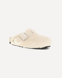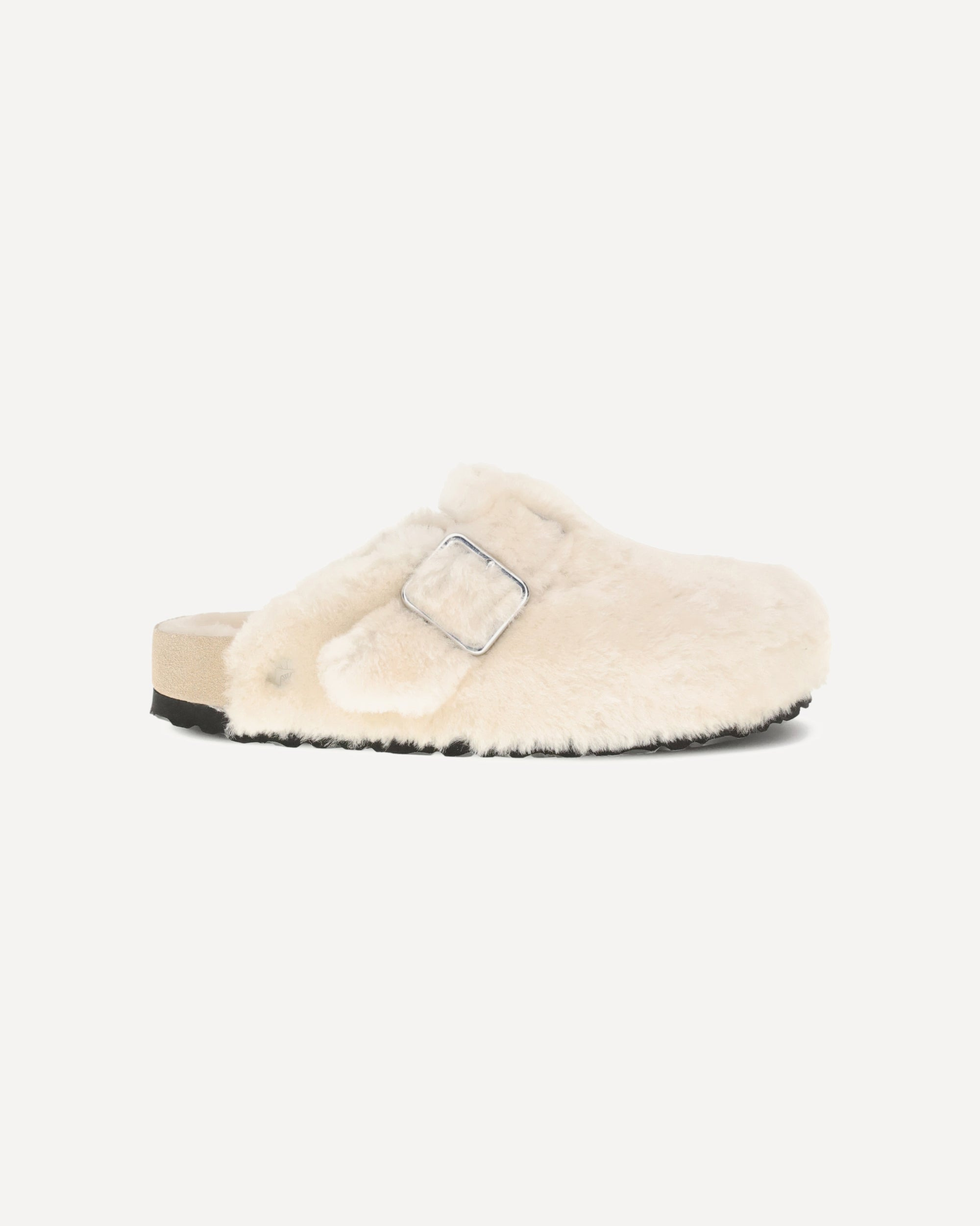 Shearling Boston Mules by Birkenstock 1774 offer the perfect blend of comfort and refined style. Made with a soft fur lining and a warm lamb fur footbed, they are designed to wrap the foot in a hug of softness. The anatomical cork and latex footbed provides ideal support, while the EVA sole ensures lightness and flexibility. Adjustable metal buckles complete the design for a customized fit and timeless aesthetic. DETAILS - Sku: 1031376_CREAM - Season: AW25 - Composition: UPPER 100% Fur SOLE 100% Rubber - MADE IN GERMANY