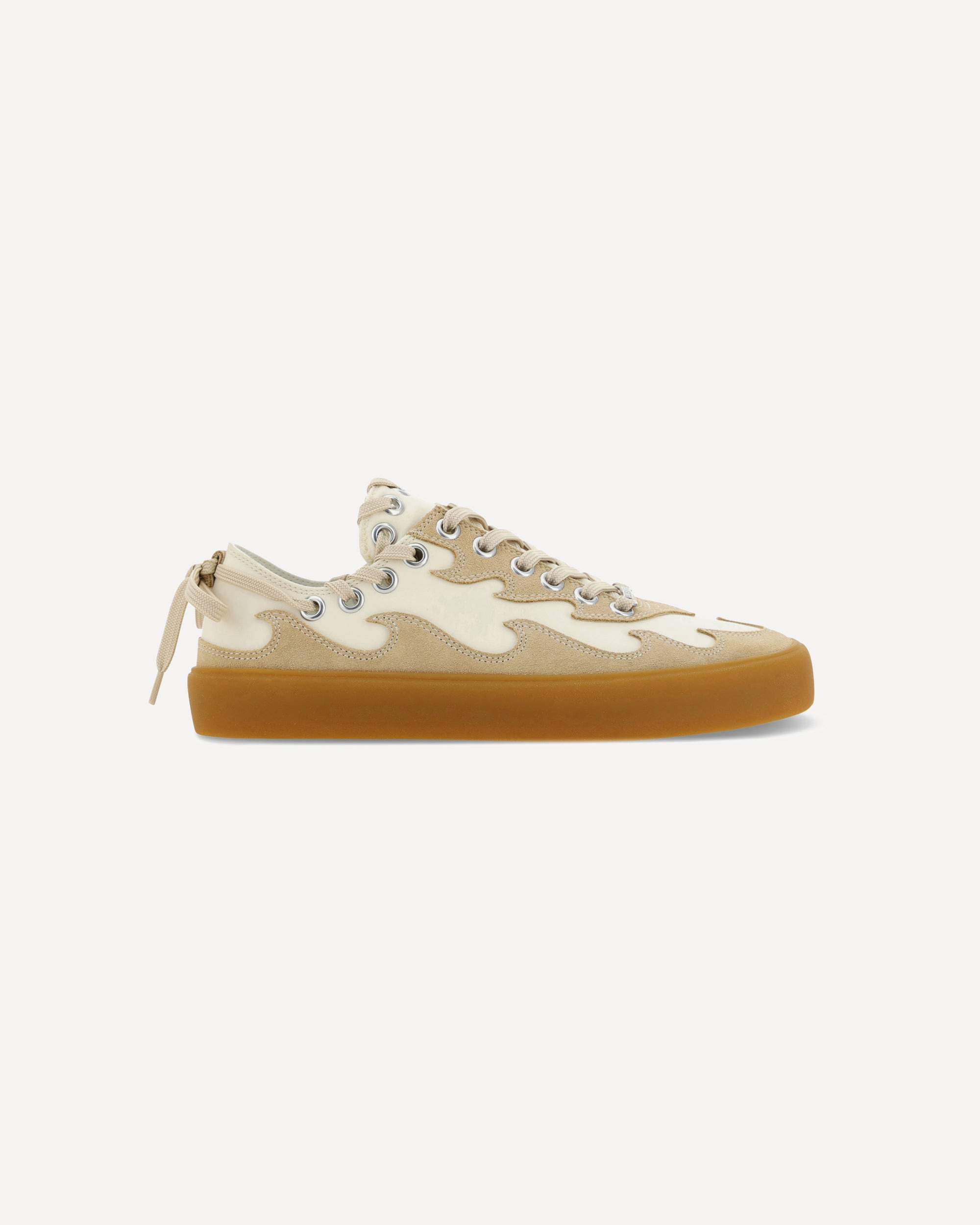 Bluemarble's Kellys leather Sneakers stand out for their bold and contemporary design. Featuring a round toe and a contrasting flat sole, they have a distinctive lace-up closure to tie at the heel for an original touch. The flame-shaped suede inserts add dynamism to the profile, while the contrasting logoed insole completes the look with a distinctive detail. DETAILS - Sku: FO04LT16B23BEI_BEIGE - Season: AW23 - Composition: SOLE 100% Calf Leather Bos Taurus UPPER 100% Calf Leather Bos Taurus - MADE IN CHINA