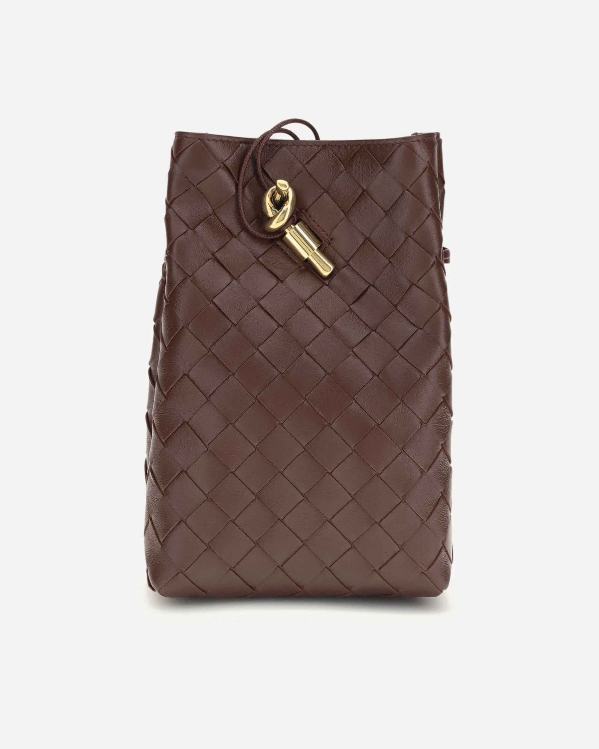 The Andiamo smartphone Pouch by Bottega Veneta embodies the House’s understated elegance through the iconic Intrecciato motif crafted in supple nappa leather. Compact yet refined, it features a single main compartment and the signature metal Knot closure, a sculptural and distinctive detail. The sliding leather strap allows for effortless wear, while the calfskin-lined interior adds a discreet touch of luxury. A sophisticated accessory designed to elevate everyday essentials with modern ease. DETAILS - Sku: 843890VCPP0_6147 - Season: SS26 - Dimension: 14x21.5x7 - Composition: GENERAL 100% Lamb - MADE IN ITALY