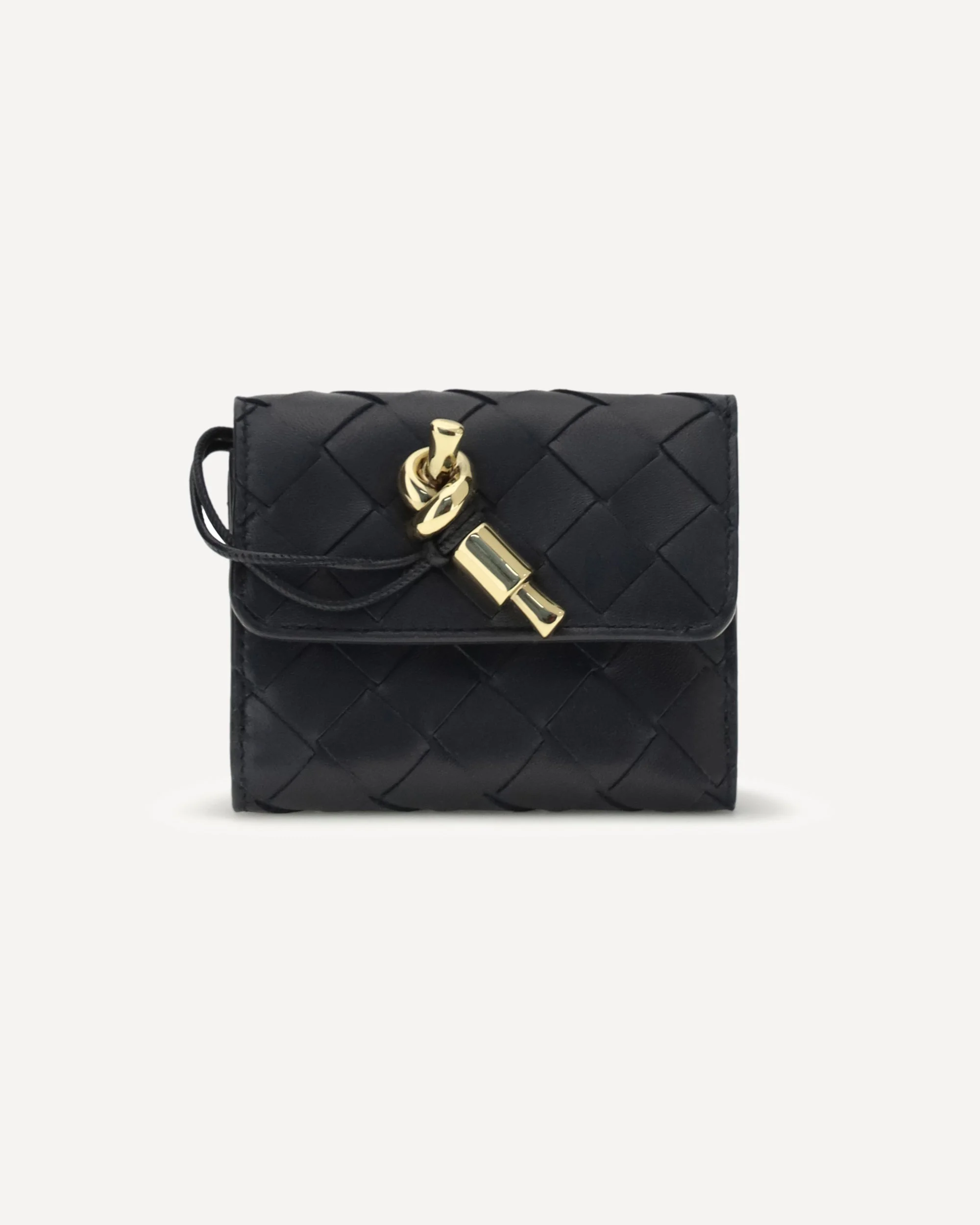 The Andiamo Tri-Fold Wallet by Bottega Veneta is an elegant tri-fold wallet in nappa leather with iconic Intrecciato workmanship and a metal Knot detail. It features four card slots, a bill compartment, and a zip coin pocket, while the magnetic closure ensures practicality and security, combining functionality and sophisticated style in a distinctive accessory. DETAILS - Sku: 824968VCPP2_4338 - Season: SS26 - Dimension: 10x8 - Composition: GENERAL 100% Lamb Ovis Aries Aries - MADE IN ITALY