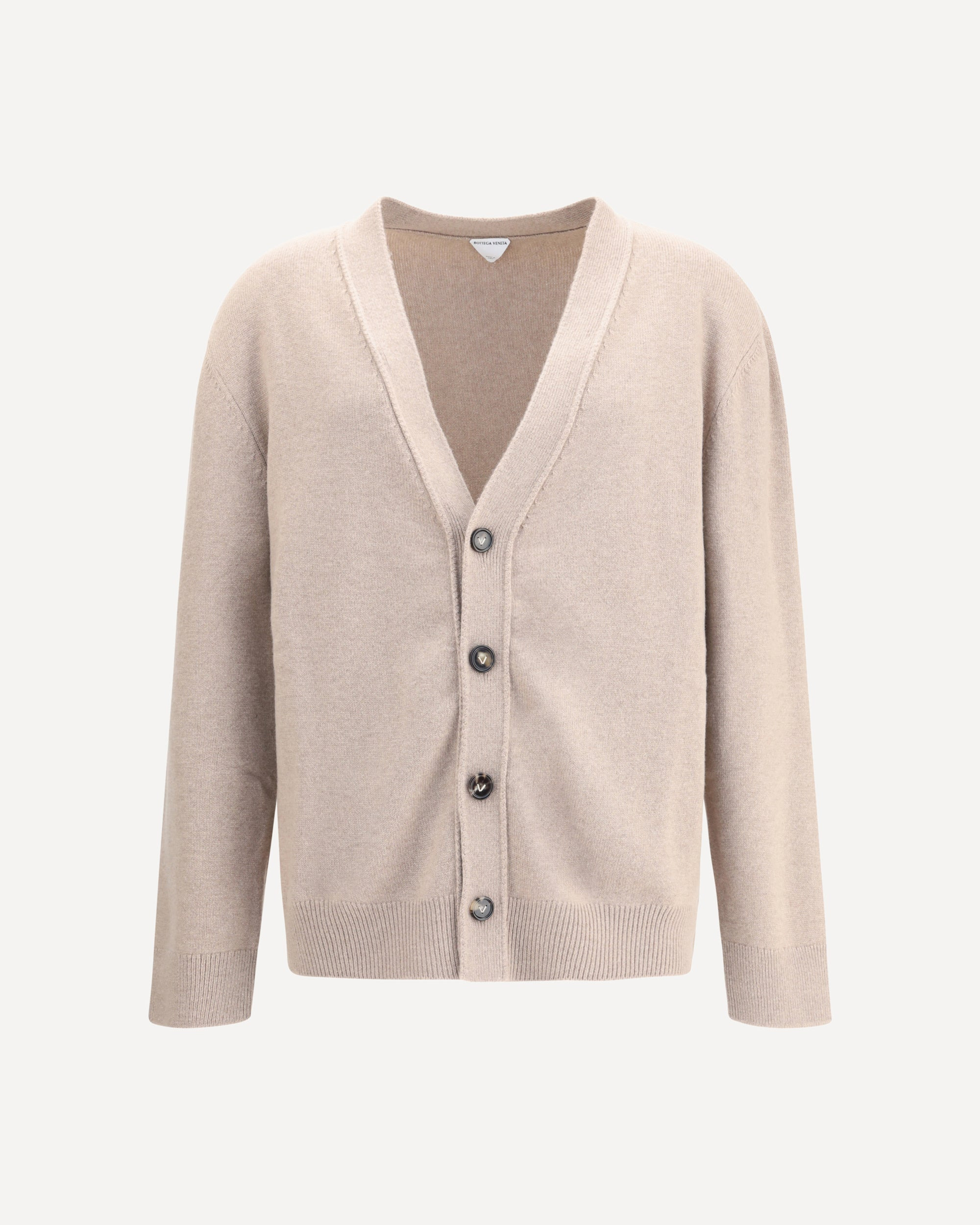 Bottega Veneta's cashmere Cardigan is an essential garment with a refined and timeless style. Made of medium-weight cashmere, it offers a soft and comfortable feel that is ideal for any season. The classic design is enhanced by a suede patch with the iconic Intrecciato pattern, a distinctive detail of the maison. The front button closure and regular cut complete the garment, making it perfect for both casual and more sophisticated looks. DETAILS - Sku: 843997V2MM0_9713 - Season: AW25 - Fit: Regular - Composition: GENERAL 97% Kashmir/capra Hircus 2% Polyamide 1% Elastane - MADE IN ITALY