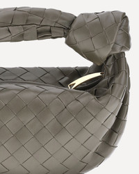 Bottega Veneta's Mini Jodie Lambskin Satchel is a masterpiece of elegance and craftsmanship. Featuring the brand's iconic intrecciato weave, the design covers the entire surface of the bag, giving it a refined texture and a unique look. The top zip closure ensures practicality and security, while the knotted detail on the handle adds a distinctive and chic touch. Inside, a convenient single compartment allows you to organize your essentials in style. Perfect for those seeking a sophisticated and versatile accessory, the Mini Jodie is the epitome of Bottega Veneta's timeless luxury. DETAILS - Sku: 651876VCPP5_3228 - Season: AW25 - Dimension: 27x27x5 - Composition: GENERAL 100% Lamb Ovis Aries Aries - MADE IN ITALY