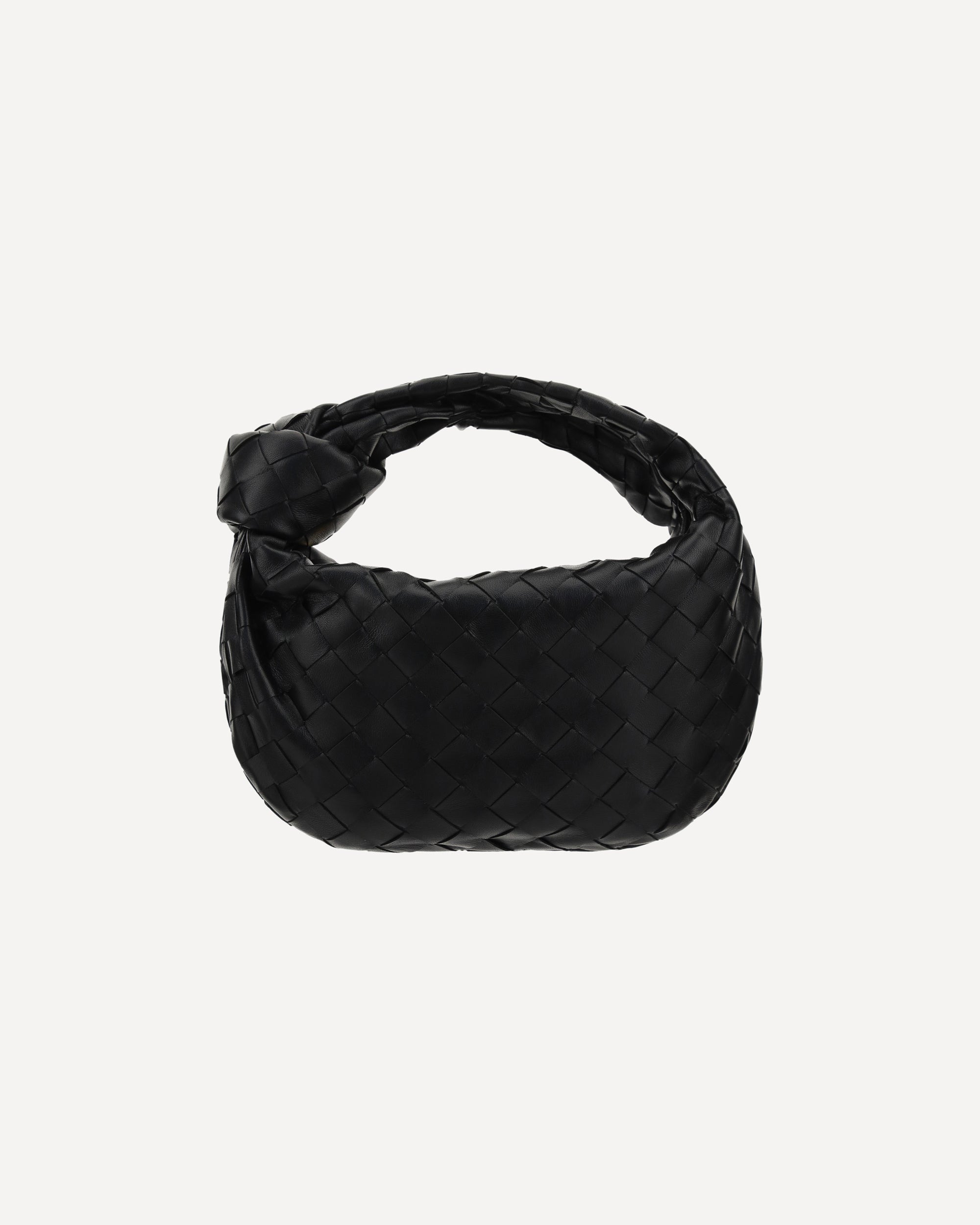 Lambskin Mini Jodie Handbag by Bottega Veneta, top zipper closure, brand's iconic all-over appliqué intrecciato design, knot detail on handle, single interior compartment. DETAILS sku 651876VCPP5_8425 composition : LAMB OVIS ARIES ARIES 100% color group : BLACK gender : WOMAN season : SS24 size chart : WOMAN UNI category name : SHOULDER BAGS icon : icon dimensions : 21 x 27 x 5 cm