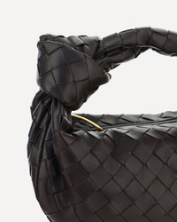 Lambskin Mini Jodie Handbag by Bottega Veneta, top zipper closure, brand's iconic all-over appliqué intrecciato design, knot detail on handle, single interior compartment. DETAILS sku 651876VCPP5_2132 composition : LAMB OVIS ARIES ARIES 100% color group : BROWN gender : WOMAN season : AW24 size chart : UNI category name : SHOULDER BAGS icon : icon dimensions : 21 x 27 x 5 cm