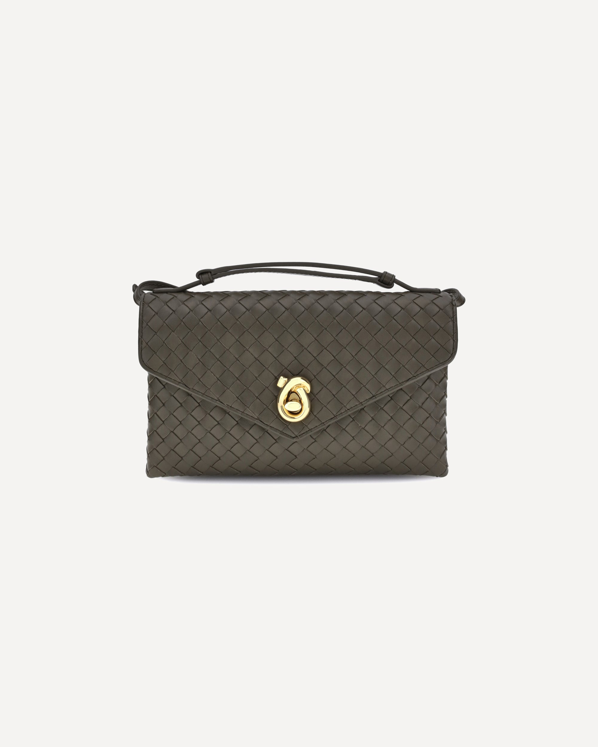 Bottega Veneta's Knot Lock Shoulder Bag is made of lambskin leather, with a sophisticated design and the brand's iconic woven pattern. It features a flat top handle, an adjustable and removable shoulder strap for different wearing options. The closure features the iconic Knot Lock on the front, while on the back you find a slit pocket. Inside, the bag offers two compartments and a card slot, combining elegance and functionality in one accessory. DETAILS - Sku: 817191V08Z0_3230 - Season: AW25 - Dimension: 25x25x5.5 - Composition: GENERAL 100% Lamb Ovis Aries Aries - MADE IN ITALY