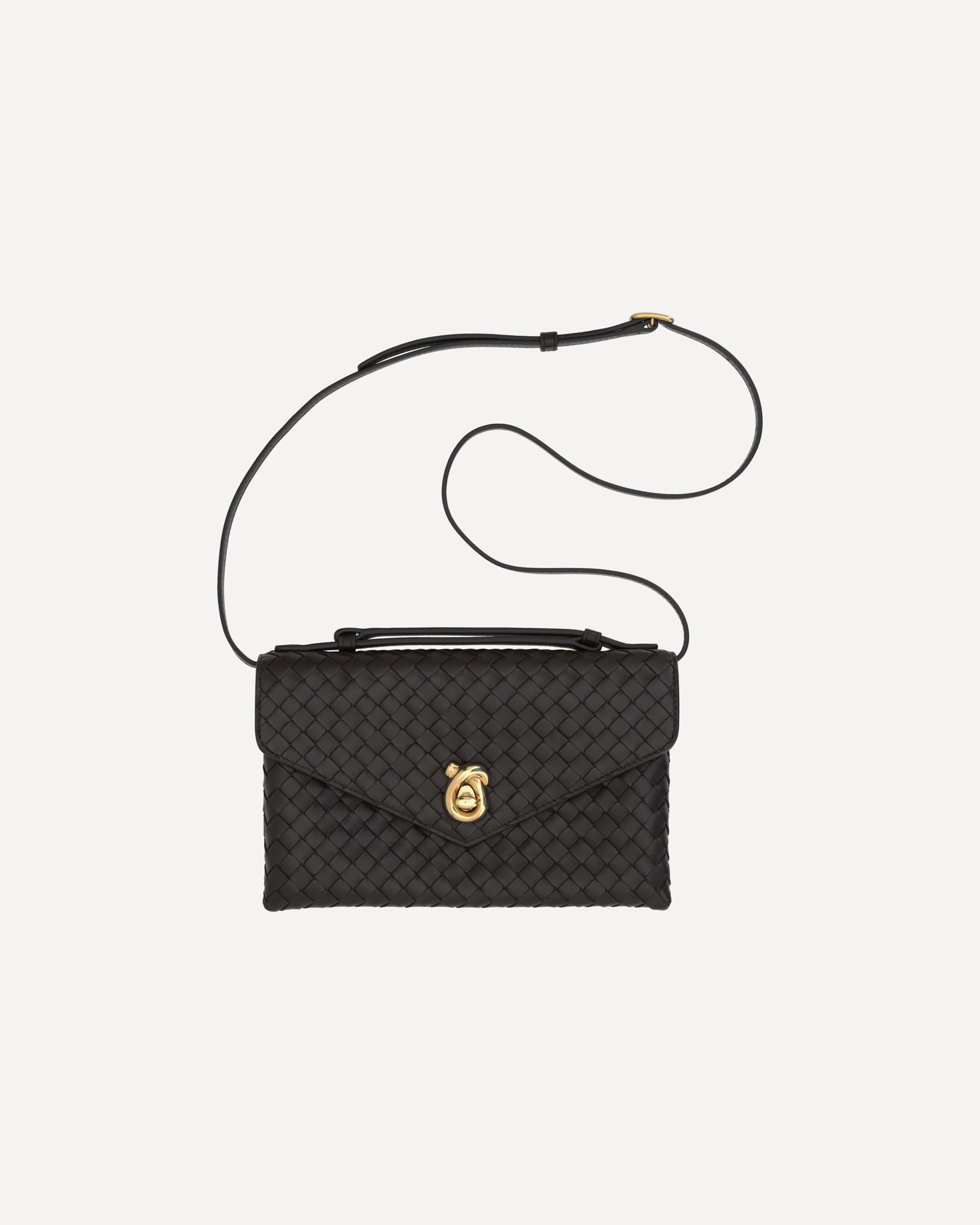 Bottega Veneta's Knot Lock Shoulder Bag is made of lambskin leather, with a sophisticated design and the brand's iconic woven pattern. It features a flat top handle, an adjustable and removable shoulder strap for different wearing options. The closure features the iconic Knot Lock on the front, while on the back you find a slit pocket. Inside, the bag offers two compartments and a card slot, combining elegance and functionality in one accessory. DETAILS - Sku: 817191V08Z0_2190 - Season: AW25 - Dimension: 25x25x5.5 - Composition: GENERAL 100% Lamb Ovis Aries Aries - MADE IN ITALY