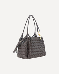 Lambskin Parachute Shoulder Bag by Bottega Veneta, one main compartment, removable interior zippered pocket, double braided handles, removable and adjustable flat shoulder strap, the brand's iconic all-over braided pattern applied, hardware with emblematic contrasting Knot detail in antiqued brass. DETAILS - Sku: 796569VCPPT_2190 - Season: AW25 - Dimension: 21x21x17 - Composition: GENERAL 100% Lamb Ovis Aries Aries - MADE IN ITALY