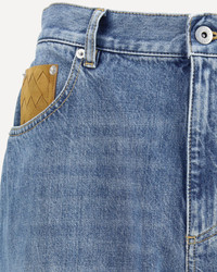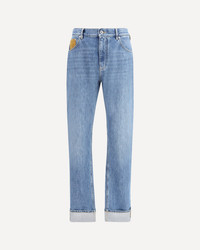 Bottega Veneta's Straight Jeans reinterpret a wardrobe classic with iconic and refined details. They feature a front button and zipper closure, belt loops, the traditional five-pocket pattern and an elegant turn-up at the bottom. The distinctive touch is provided by the brand's signature Intrecciato suede detail pocket. DETAILS - Sku: 831605V42W0_4715 - Season: AW25 - Fit: Regular - Composition: GENERAL 100% Cotton - MADE IN ITALY