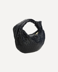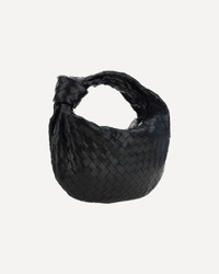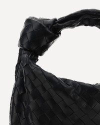 Lambskin Teen Jodie Handbag by Bottega Veneta, top zipper closure, patterned with iconic all-over woven design, knot detail on handle. DETAILS sku 690225VCPP0_8425 composition : LAMB OVIS ARIES ARIES 100% color group : BLACK gender : WOMAN season : AW23 size chart : WOMAN UNI category name : SHOULDER BAGS icon : icon dimensions : height 21 cm length 36 cm depth 13 cm